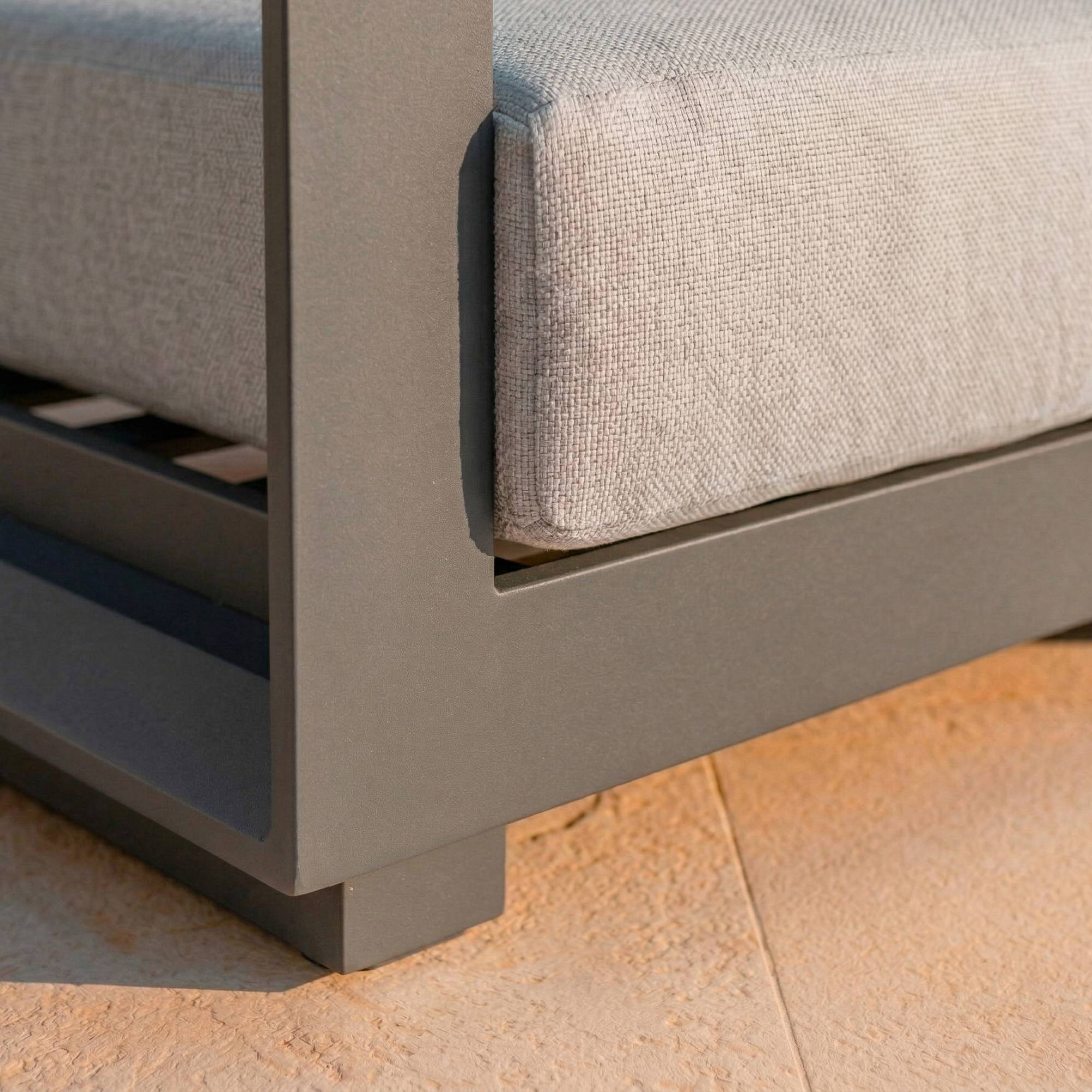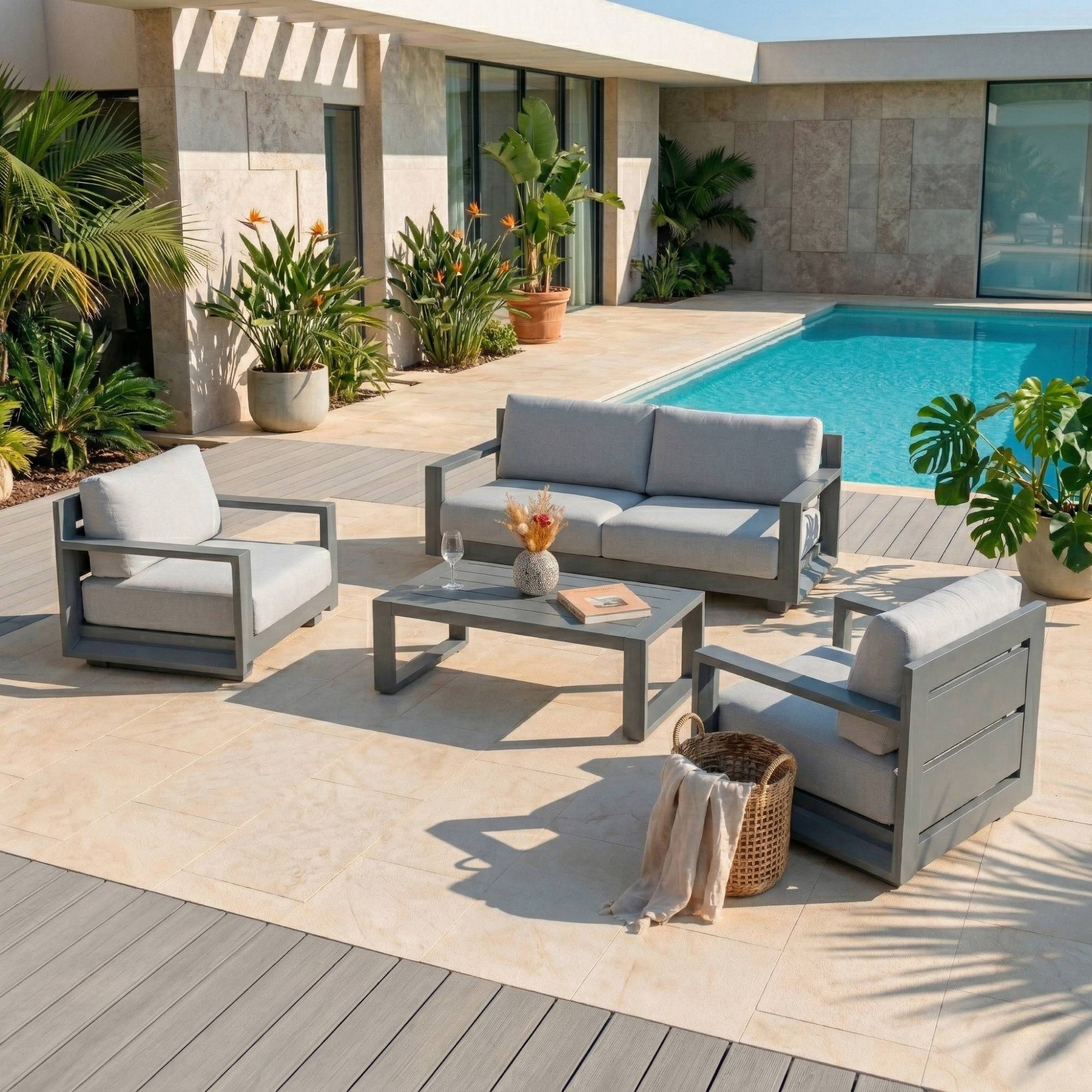 Elba : l’alliance parfaite du design et du confort. Avec ses lignes basses et épurées, ses angles droits sophistiqués et ses bases en caisson, la collection Elba incarne une modernité raffinée. Son design unique joue sur l’équilibre entre larges lattes, éléments fins et espaces ajourés, créant une harmonie visuelle subtile. Pensée pour offrir un confort optimal, elle séduit par ses silhouettes minimalistes et ses assises profondes. Grâce à sa configuration modulaire 4 places aux dimensions astucieusement étudiées, le salon s’intègre parfaitement aux petits espaces, apportant une touche contemporaine et fonctionnelle à tout extérieur.