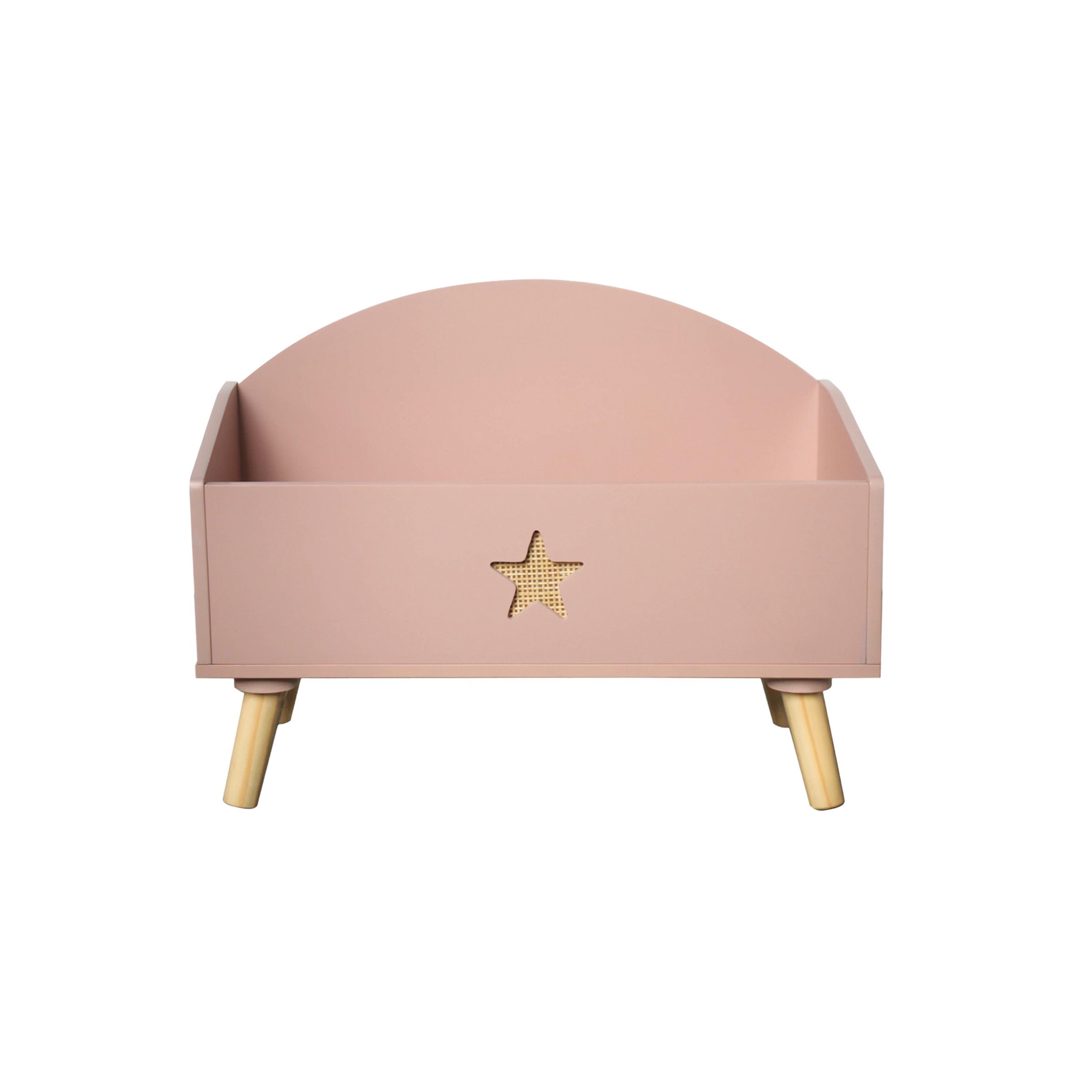 Ce coffre en bois permet de ranger facilement jeux et peluches tout en maintenant un espace ordonné.
