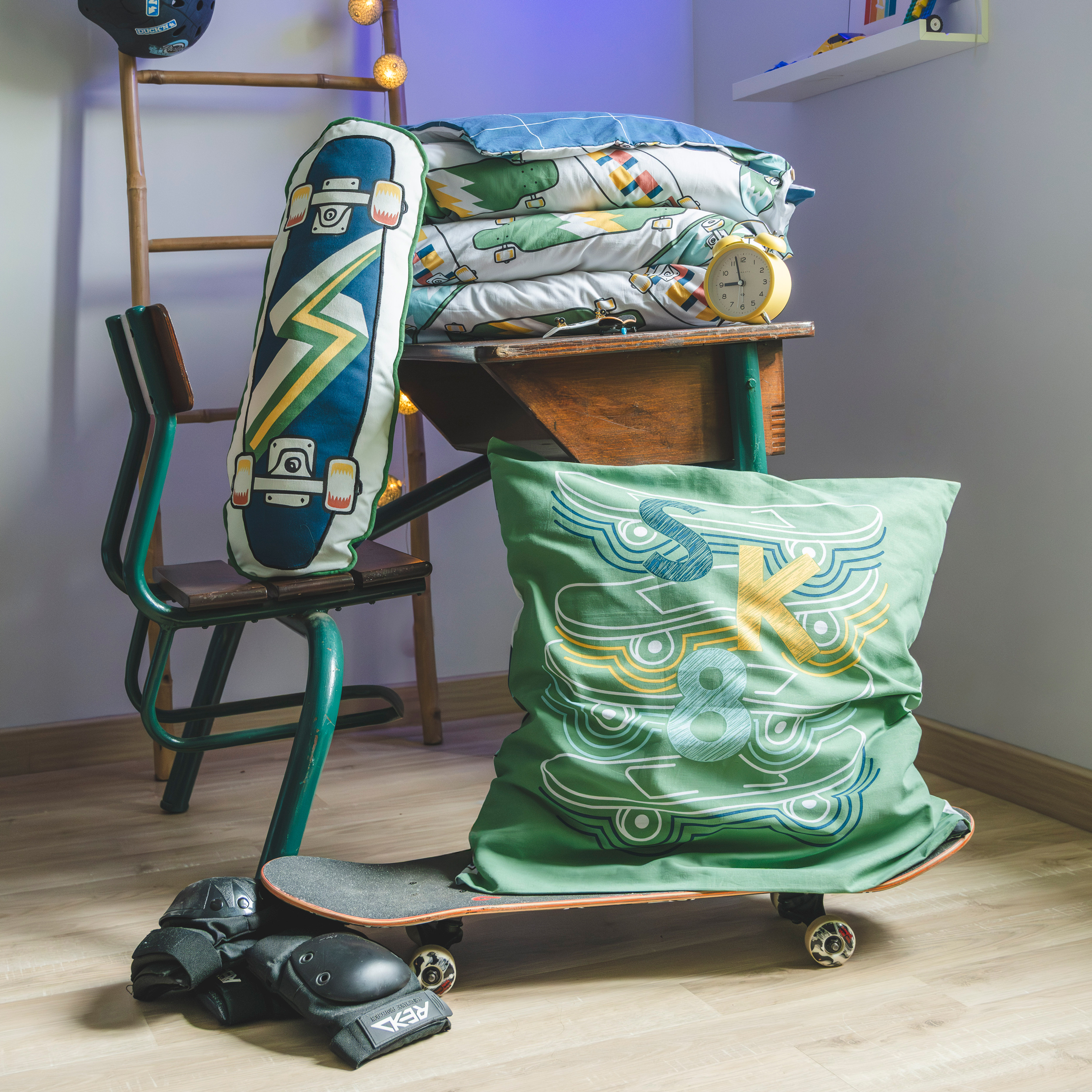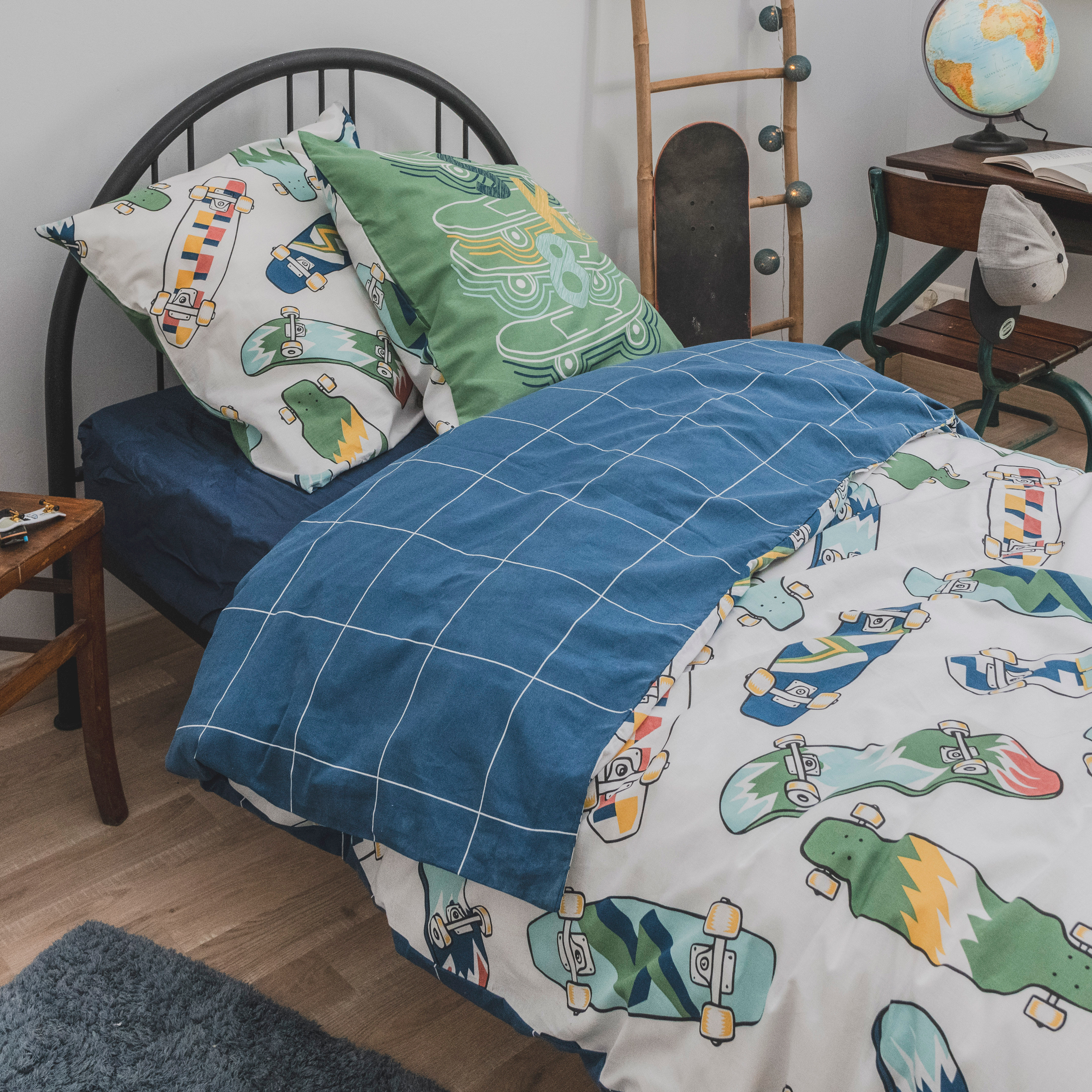 Imprimé : motifs skates au recto et carreaux au verso.