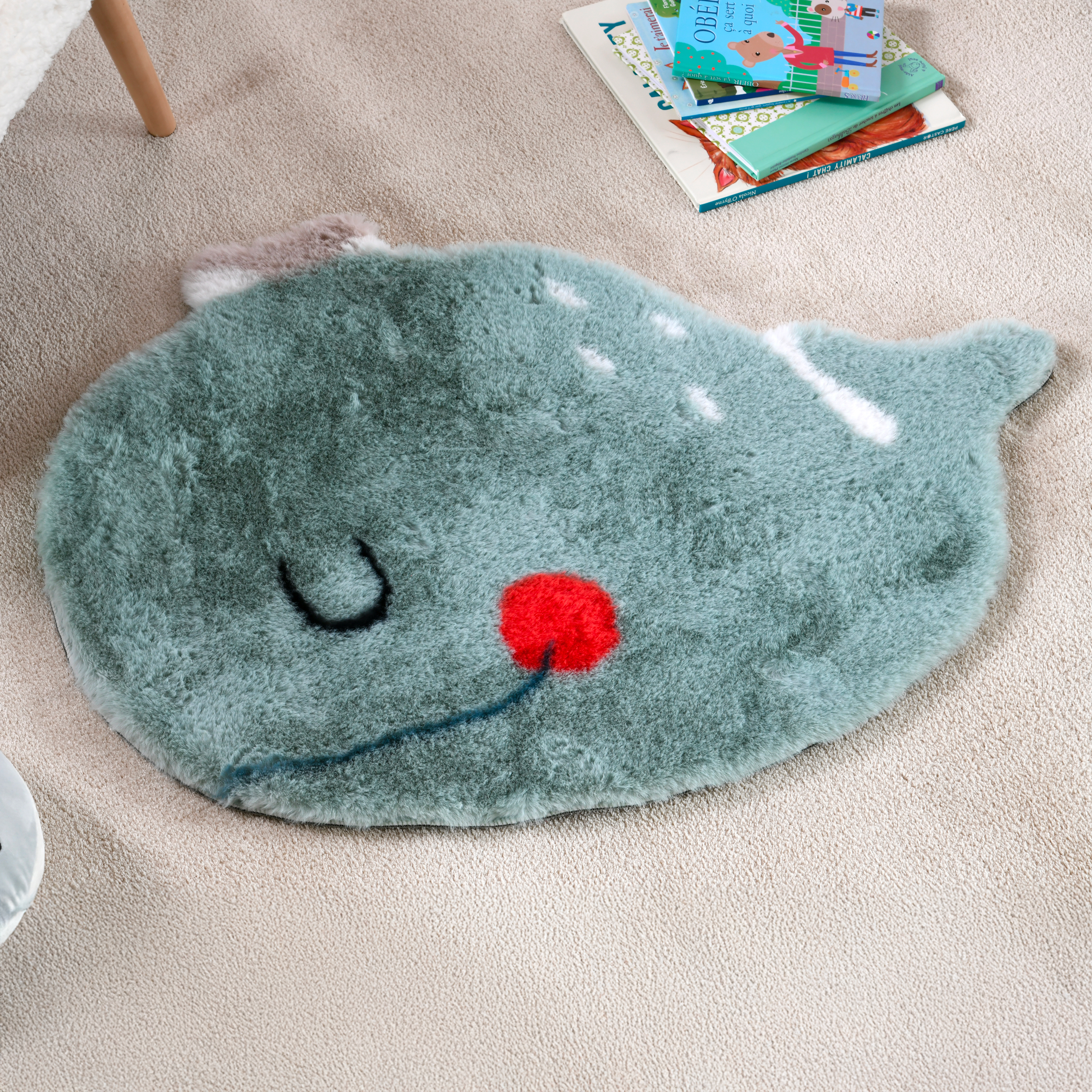 Imprimé : tapis en forme de baleine.