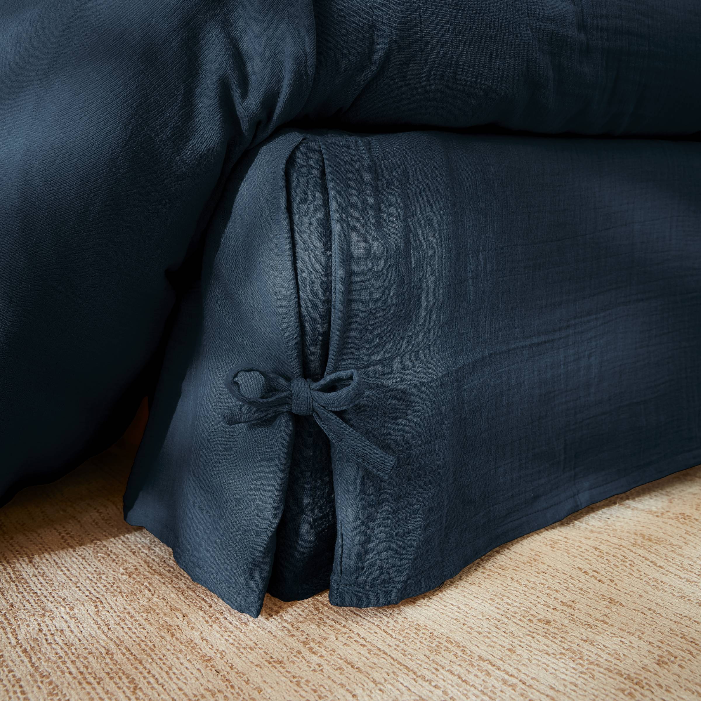 Naturellement gaufré, ce cache-sommier en gaze de coton ne nécessite pas de repassage.