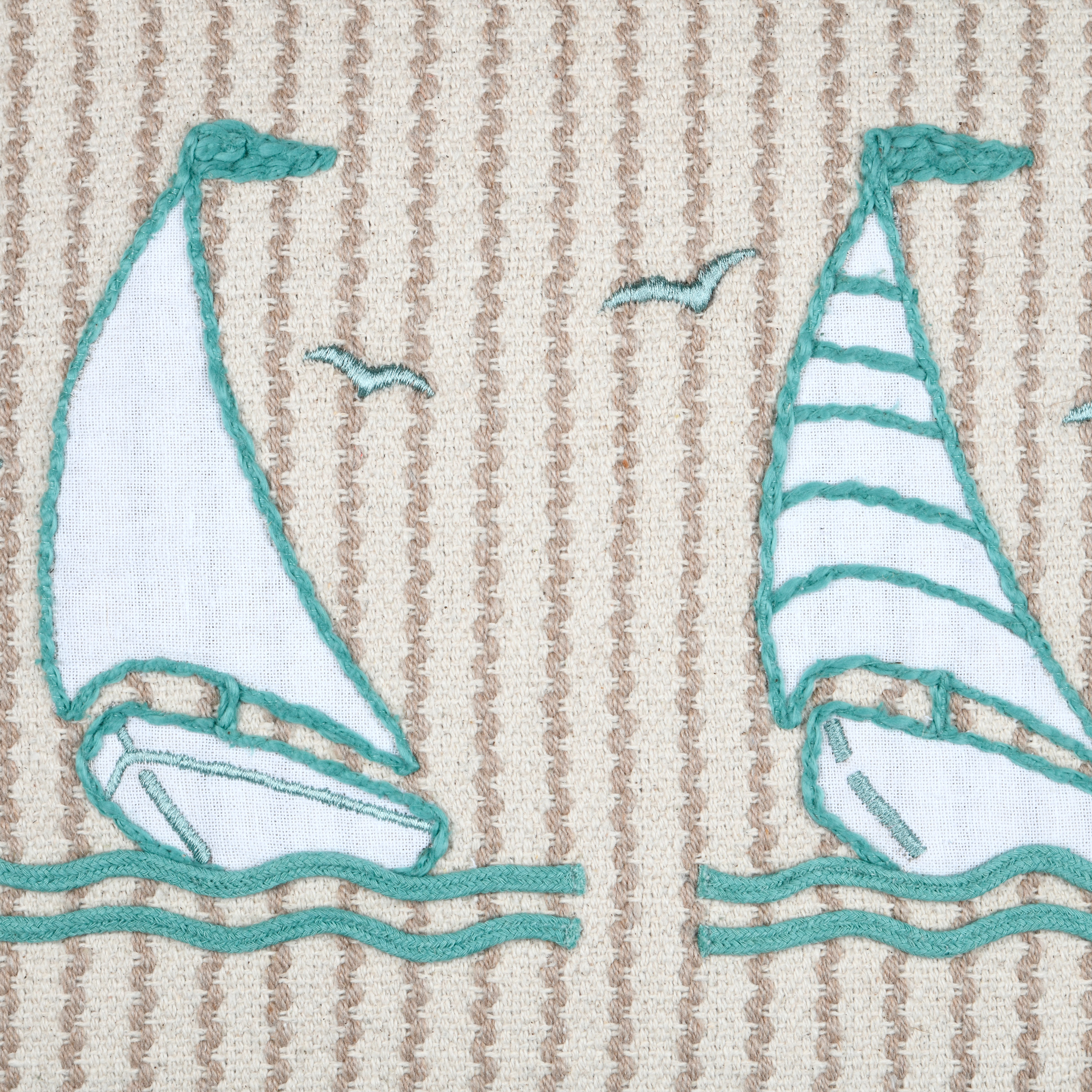 Ce coussin Barbade, de forme carrée, apportera une touche d'air marin à votre décoration intérieure. Avec ses motifs de bateaux brodés, il évoque une ambiance de bord de mer relaxante et apaisante.
