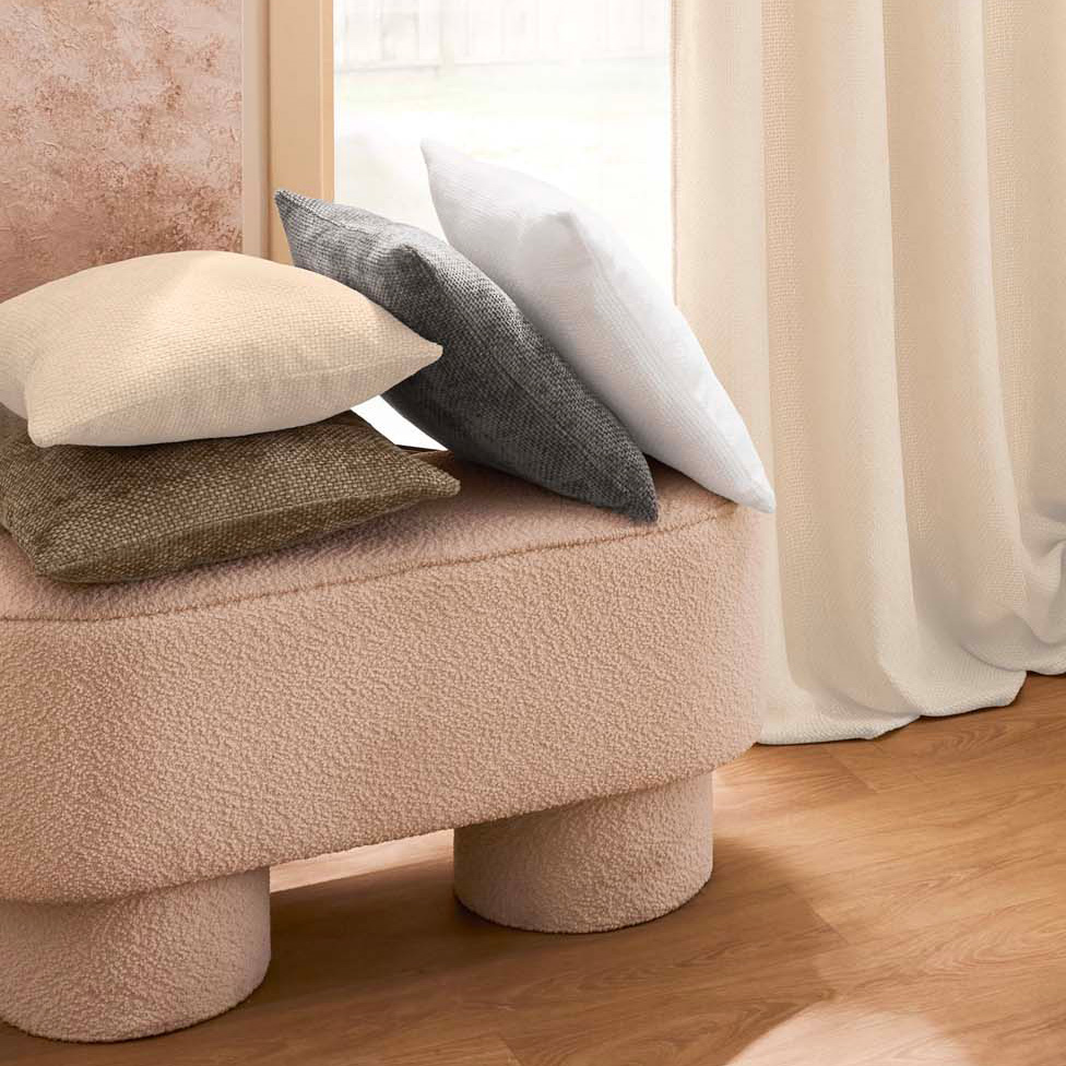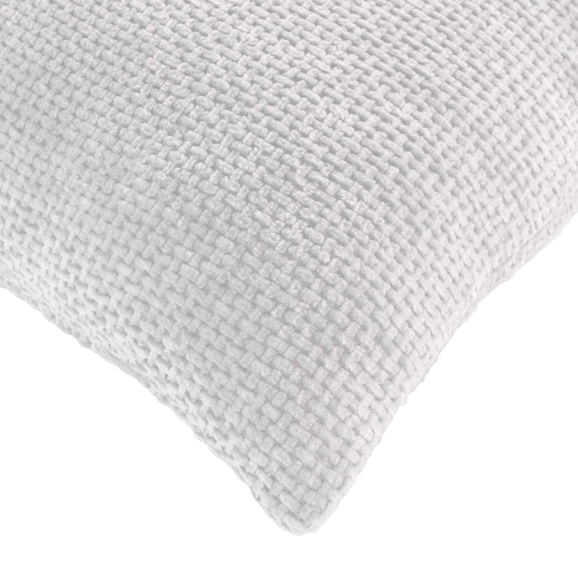 Dimensions : longueur 45 x largeur 45 cm. Matière : 100% polyester velours chenille (250 gr/m²), recto/verso. Couleur : blanc. Finition : déhoussable avec fermeture zip.