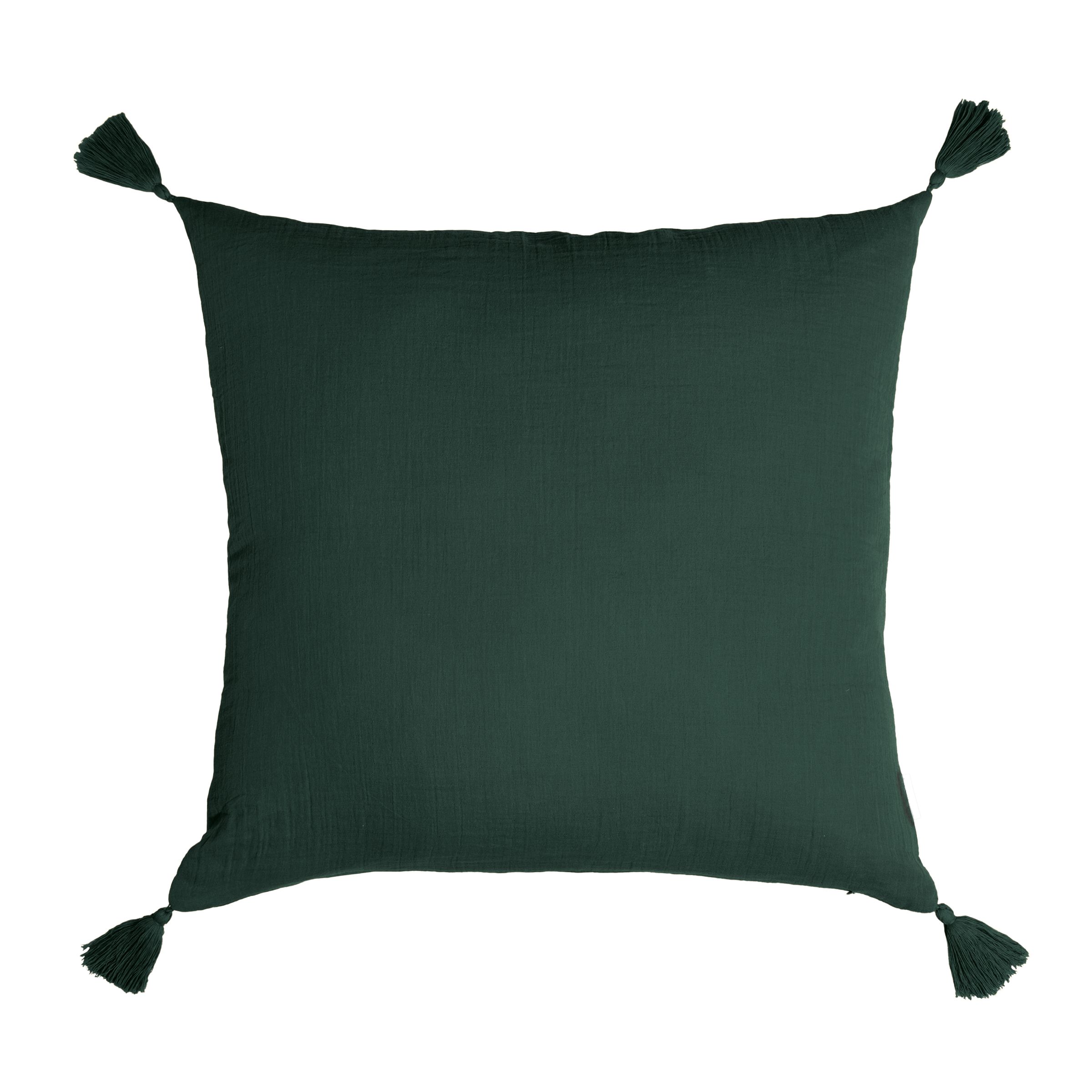 Ce coussin carré Gaïa en gaze de coton apportera une touche de douceur et de nature à votre intérieur. Sa couleur vert sapin évoque la sérénité des forêts, créant une ambiance apaisante et chaleureuse.