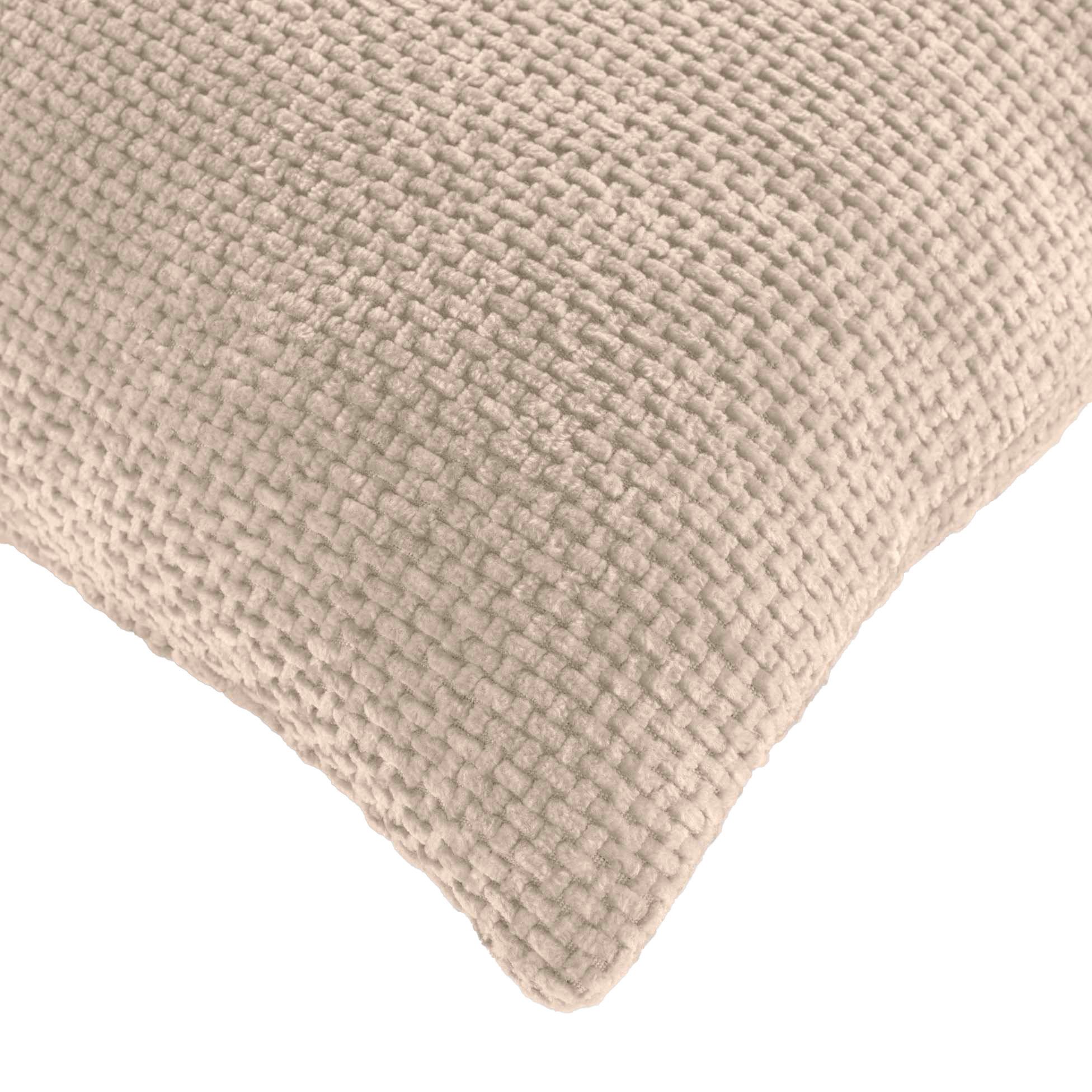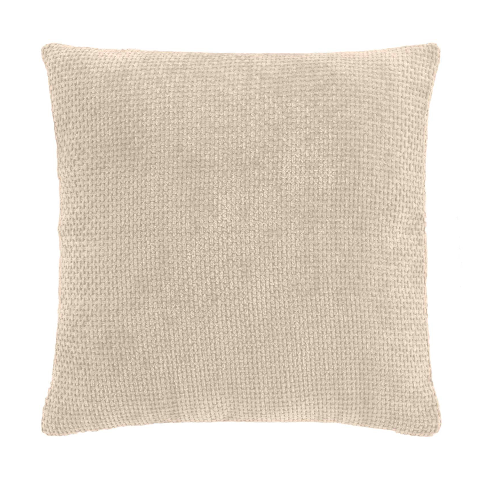 Dimensions : longueur 45 x largeur 45 cm. Matière : 100% polyester velours chenille (250 gr/m²). Couleur : écru. Finition : déhoussable avec fermeture zip.