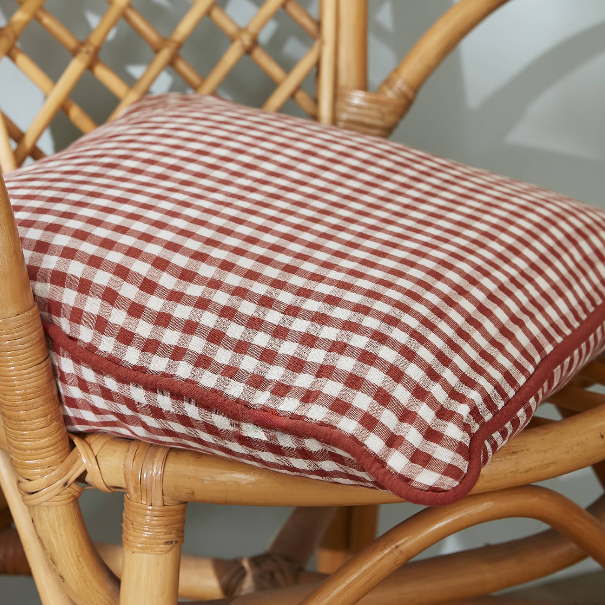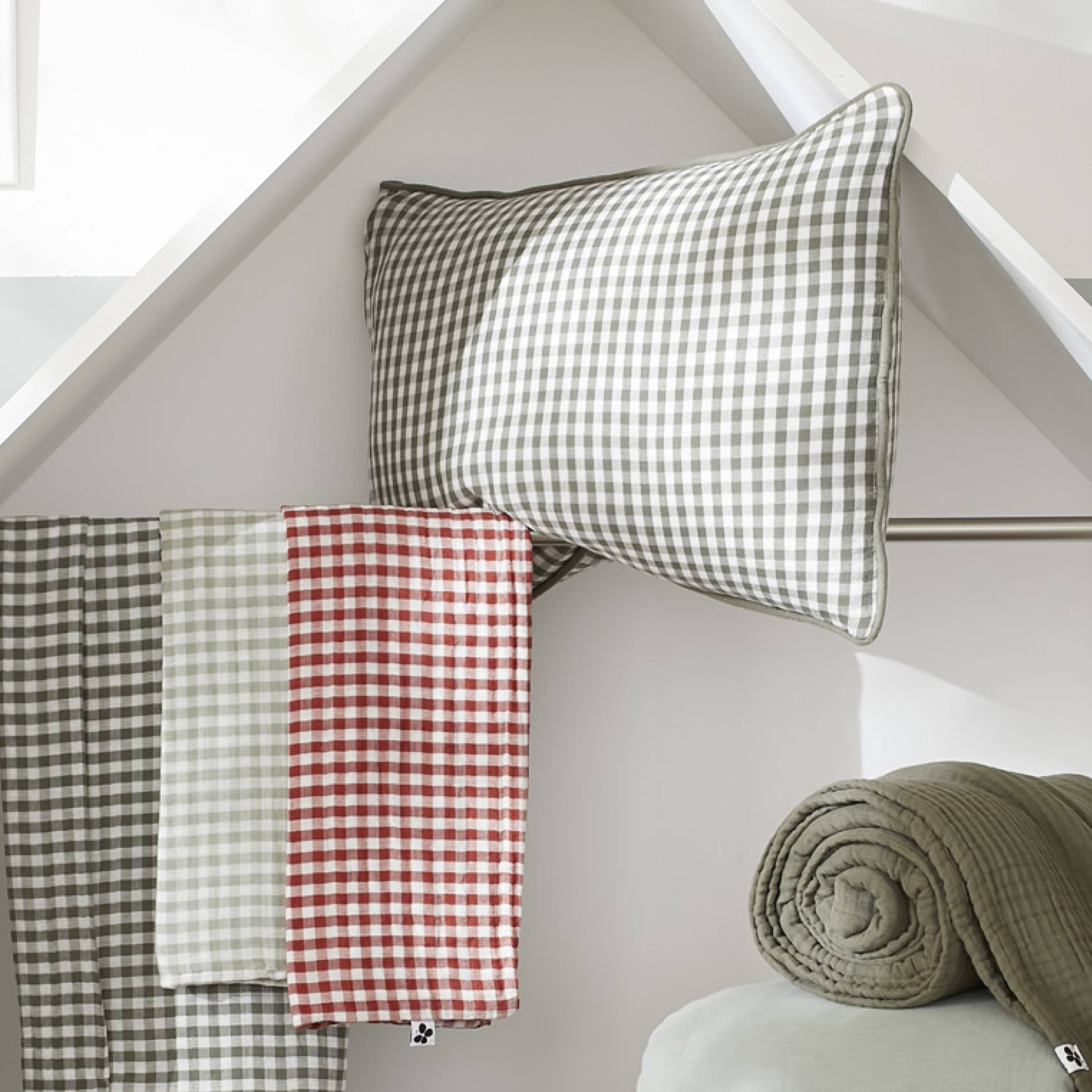 Le motif vichy revient sur le devant de la scène avec ce beau coussin déco. Associé à la gaze de coton, il apporte une touche naturelle et très douce dans le décor.