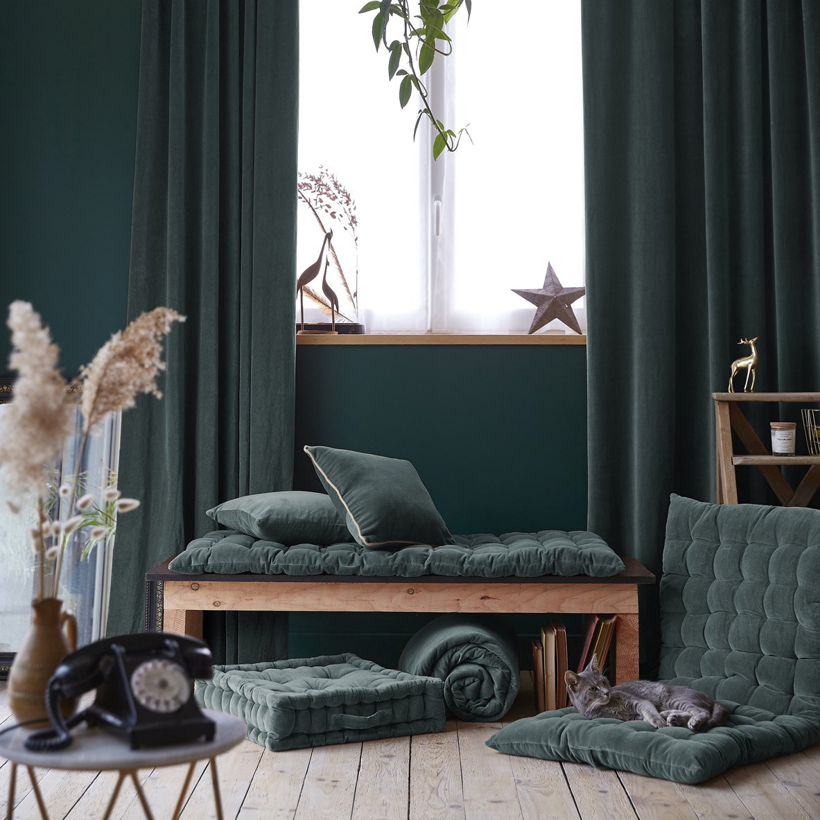 Matière : 100 % velours de coton pour la housse et 100 % polyester pour le garnissage.