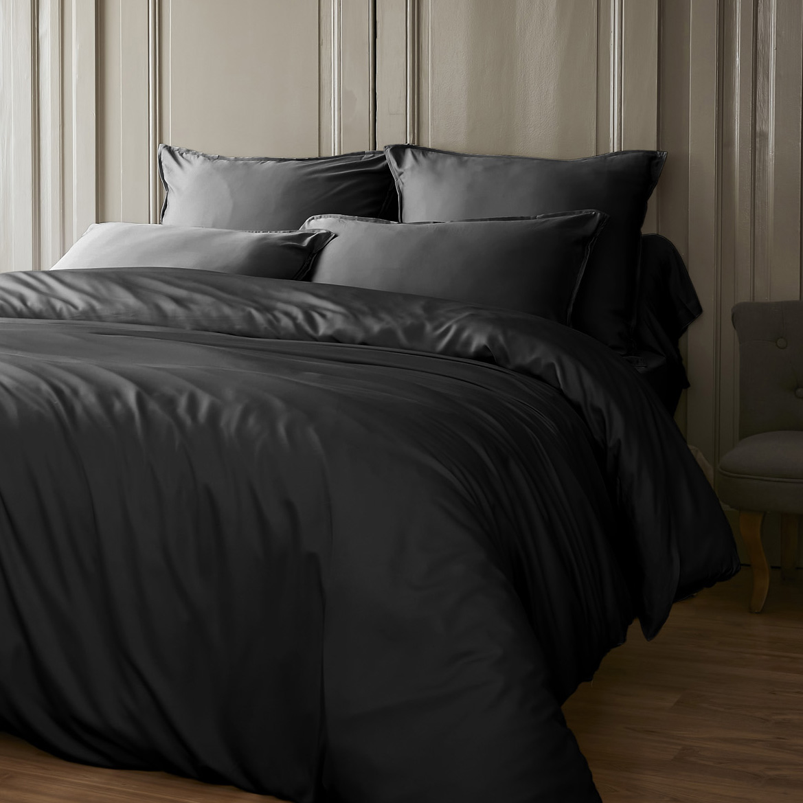 Offrez-vous une expérience de sommeil luxueuse avec notre drap housse Sienna en satin de bambou. Sa couleur noire élégante et son toucher doux et soyeux vous promettent des nuits paisibles et confortables.