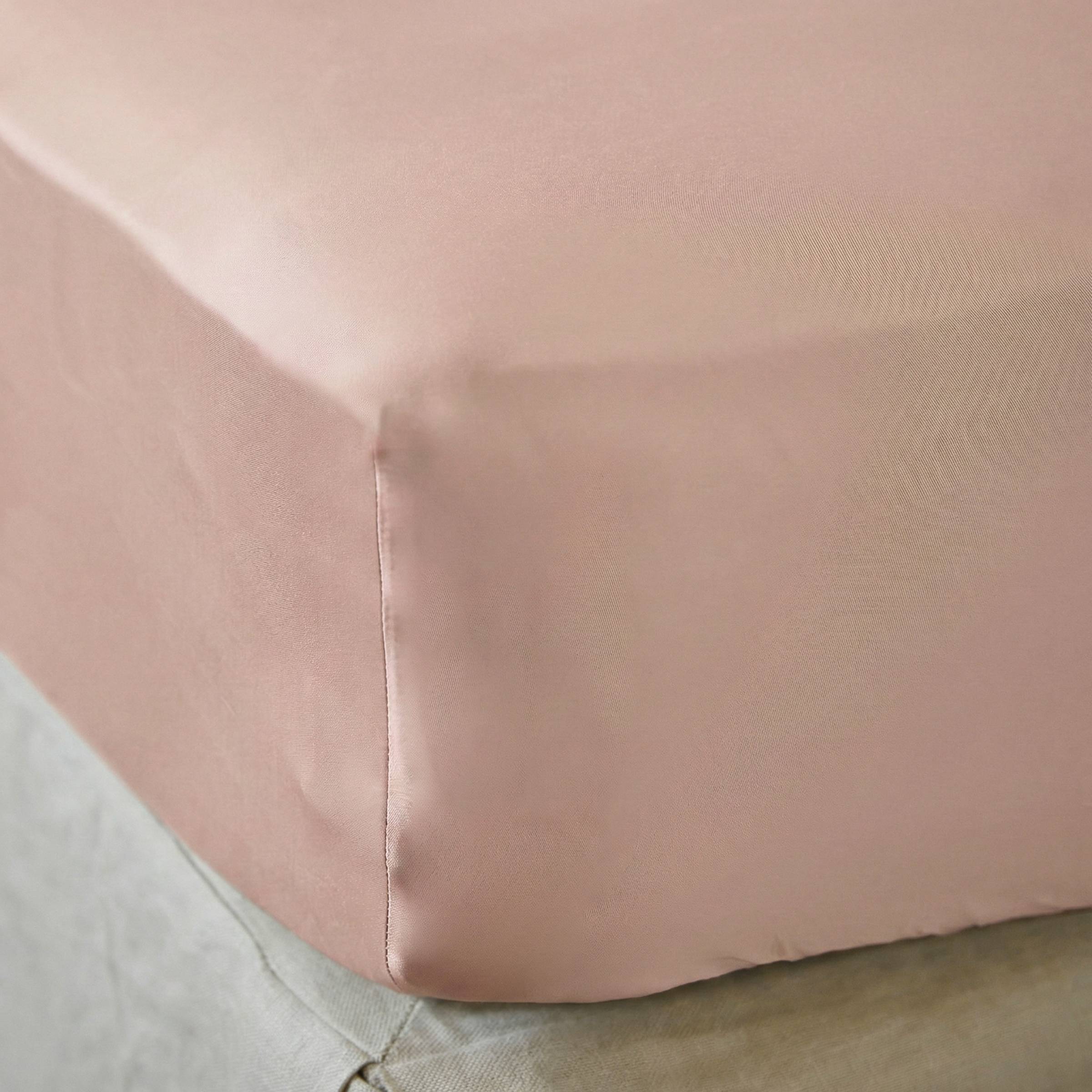 Drap housse satin de bambou (200 x 200 cm) Sienna Rose blush