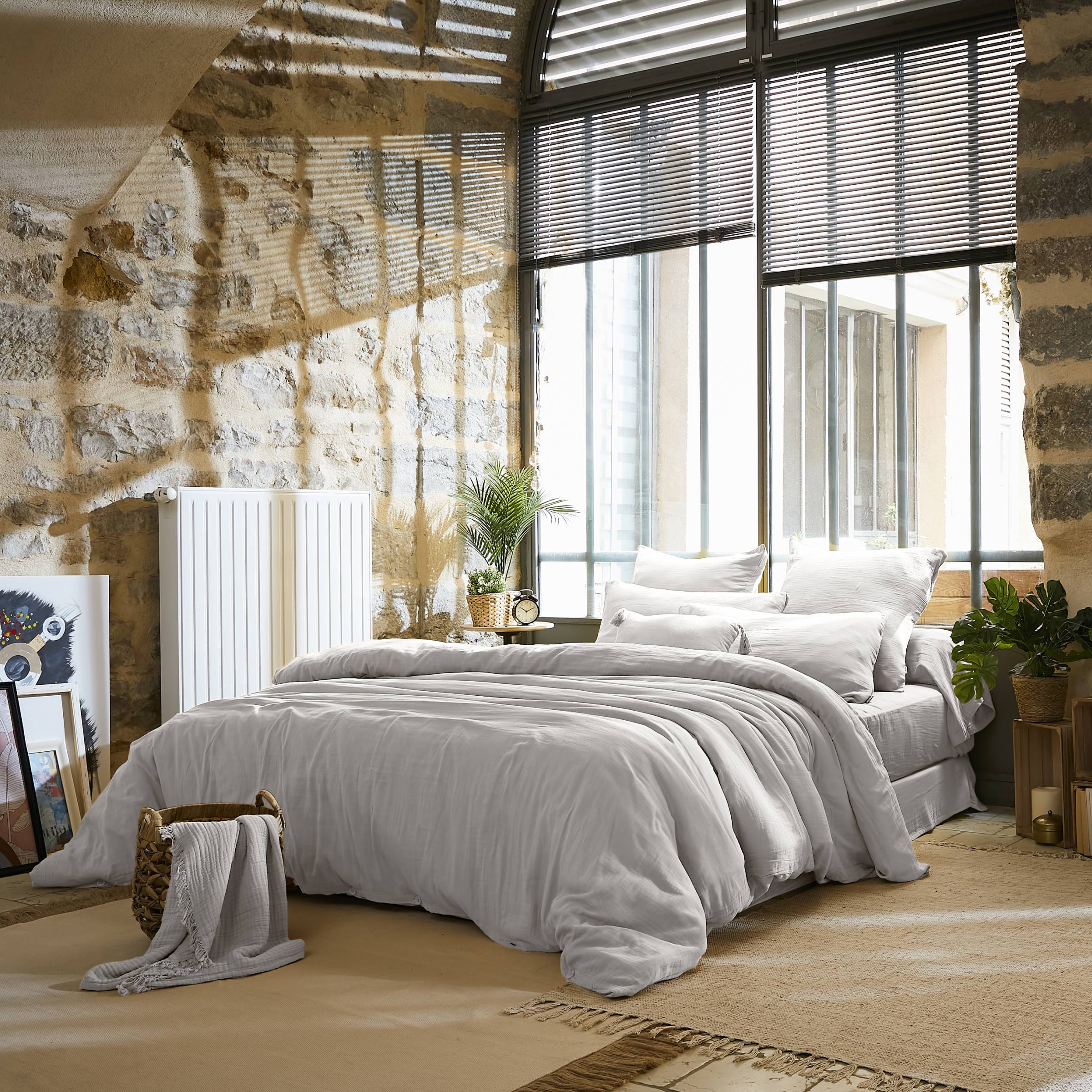 Naturellement gaufré, ce drap plat en gaze de coton ne nécessite pas de repassage.