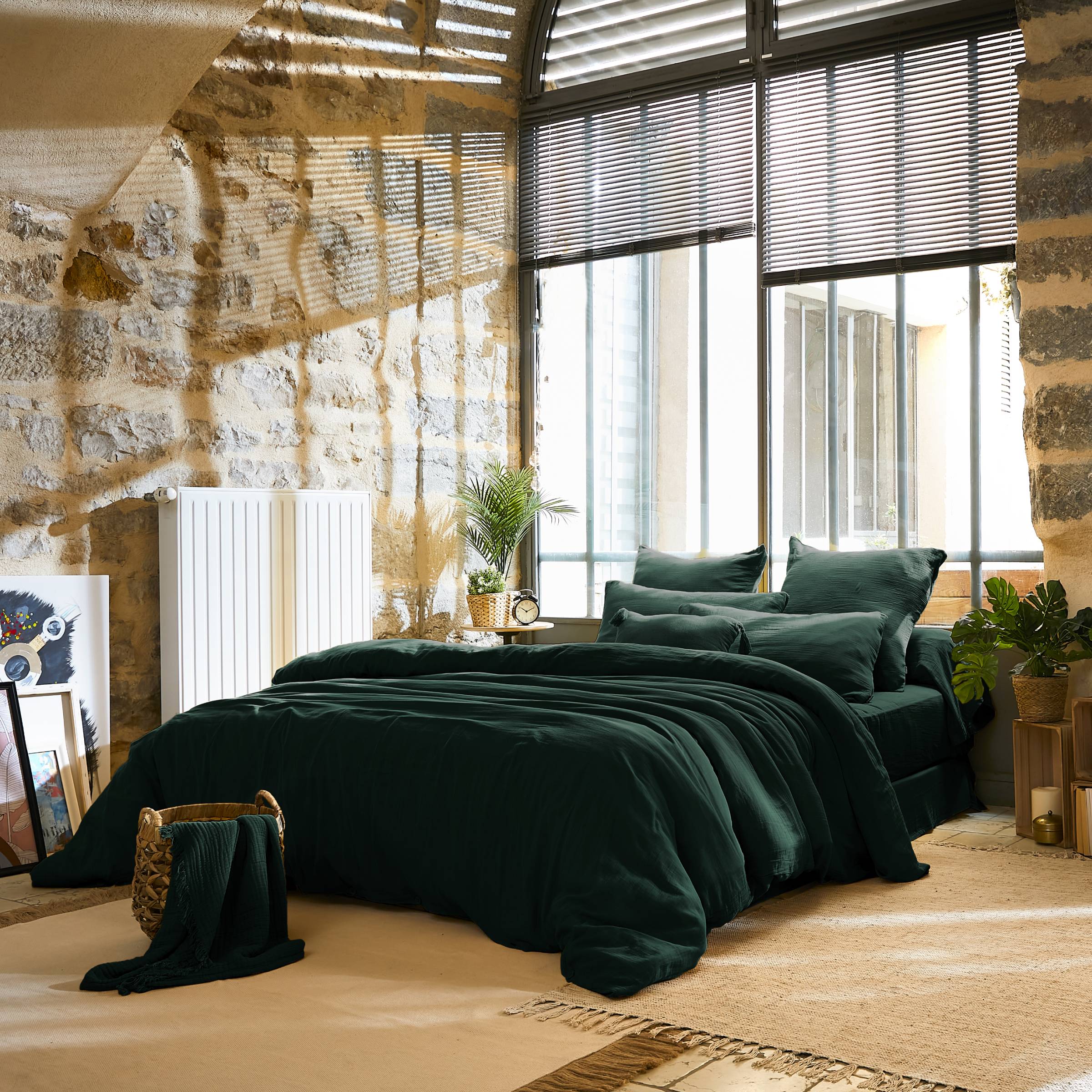 Ce drap plat Gaïa en gaze de coton vous offre un confort inégalé. Sa couleur vert sapin apporte une touche de nature et de fraîcheur à votre chambre.