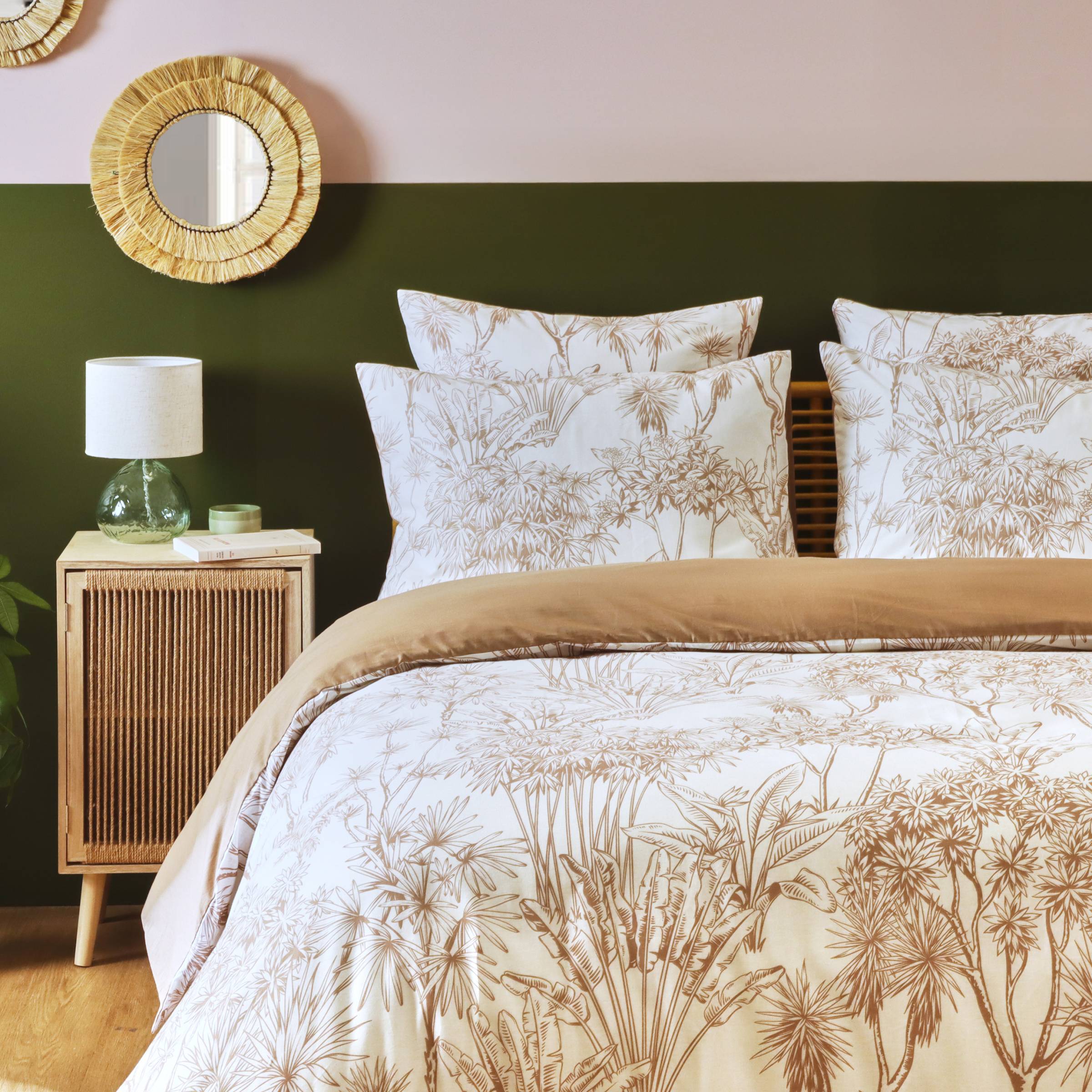 Imprimé : housse de couette à motif floral recto et unie au verso.