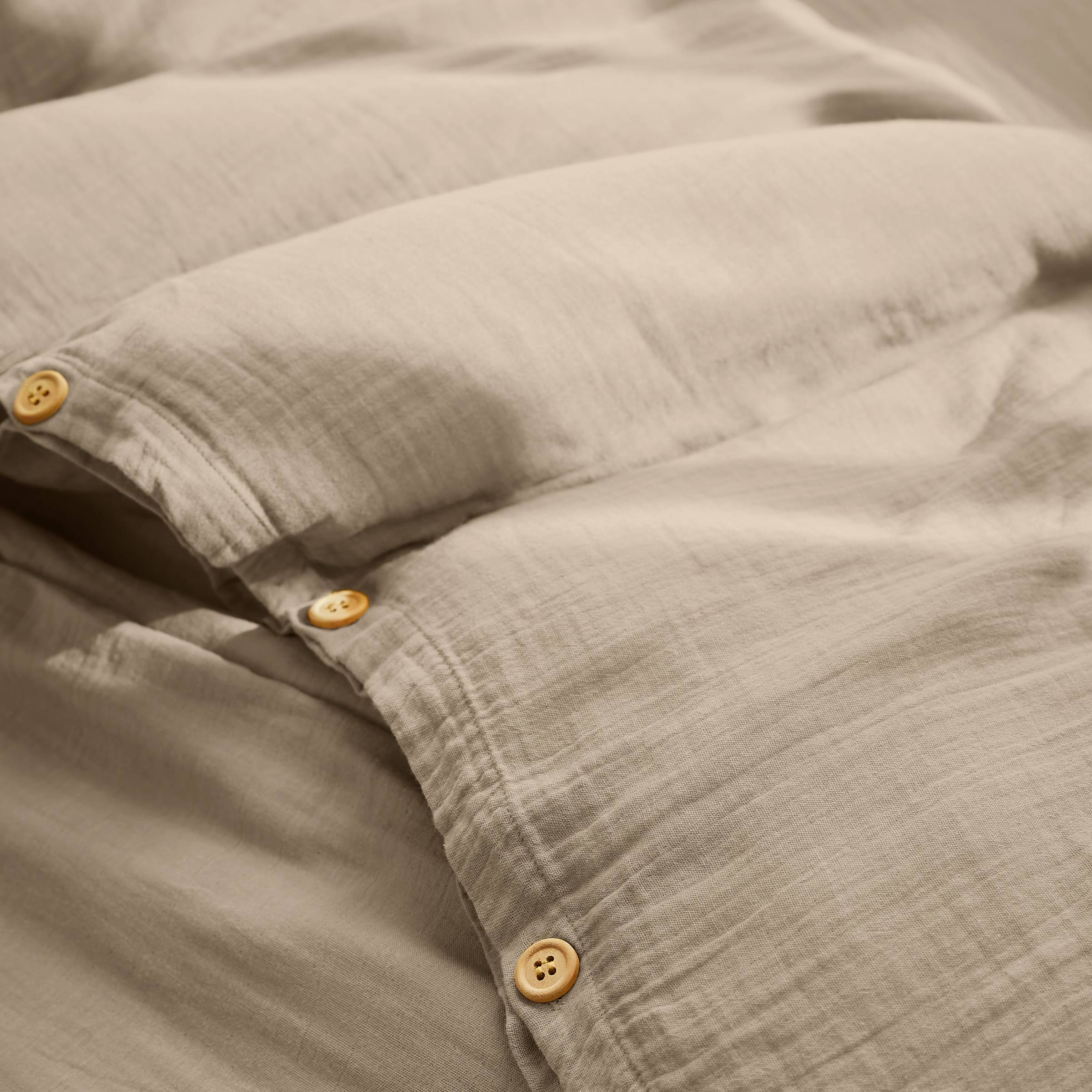 Naturellement gaufrée, cette housse en gaze de coton ne nécessite pas de repassage.