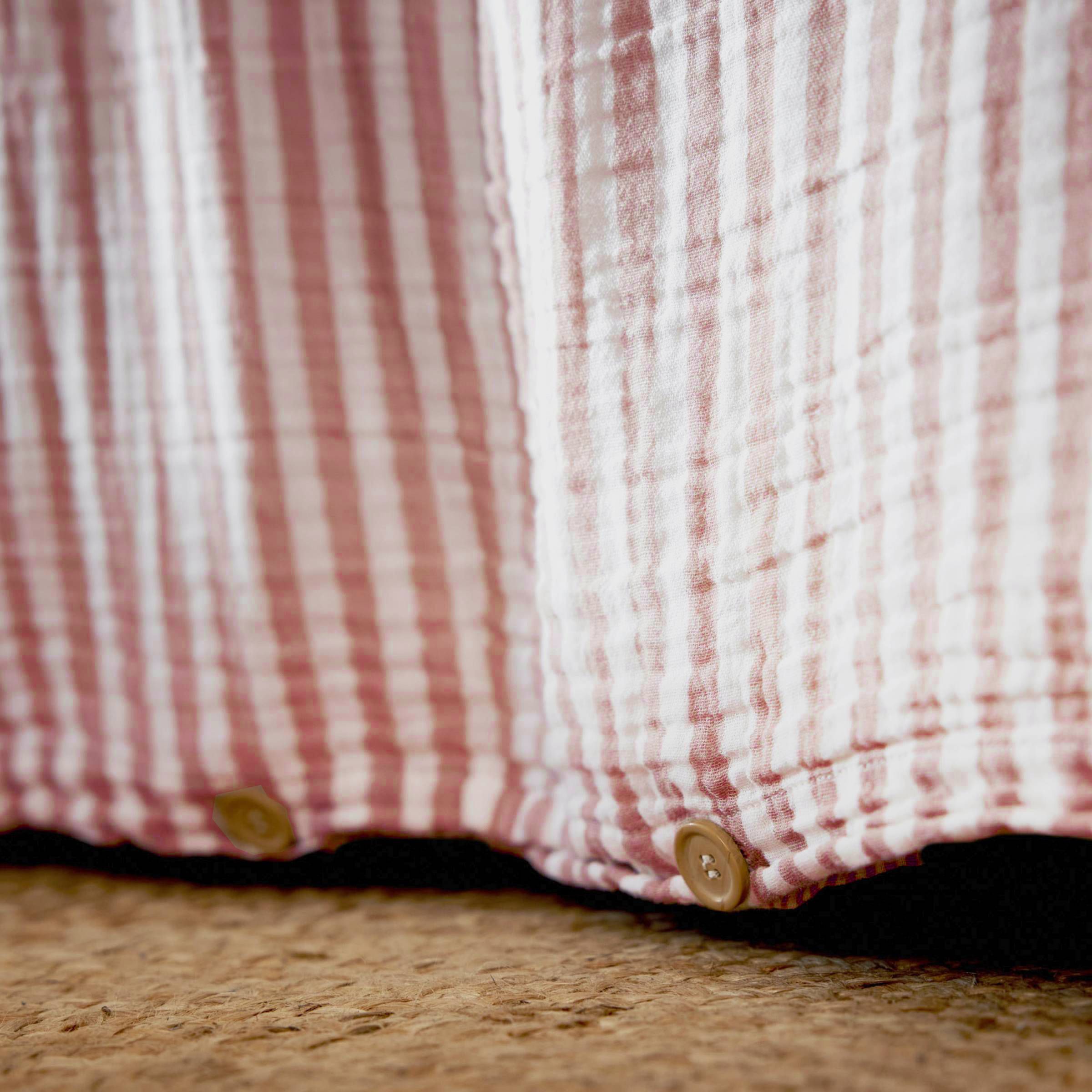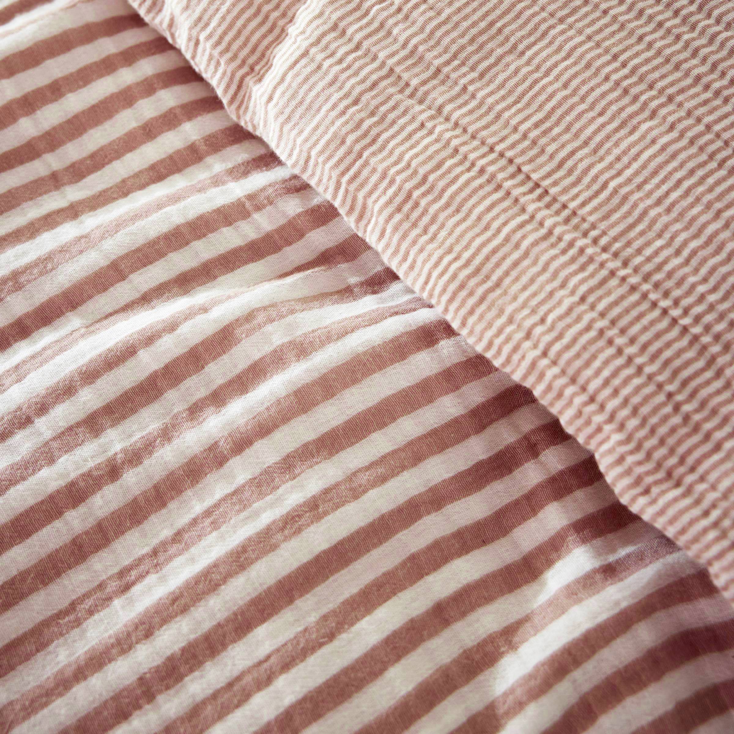 Avec sa double gaze de coton et ses rayures tissées teintes, elle trouvera parfaitement sa place dans votre chambre.