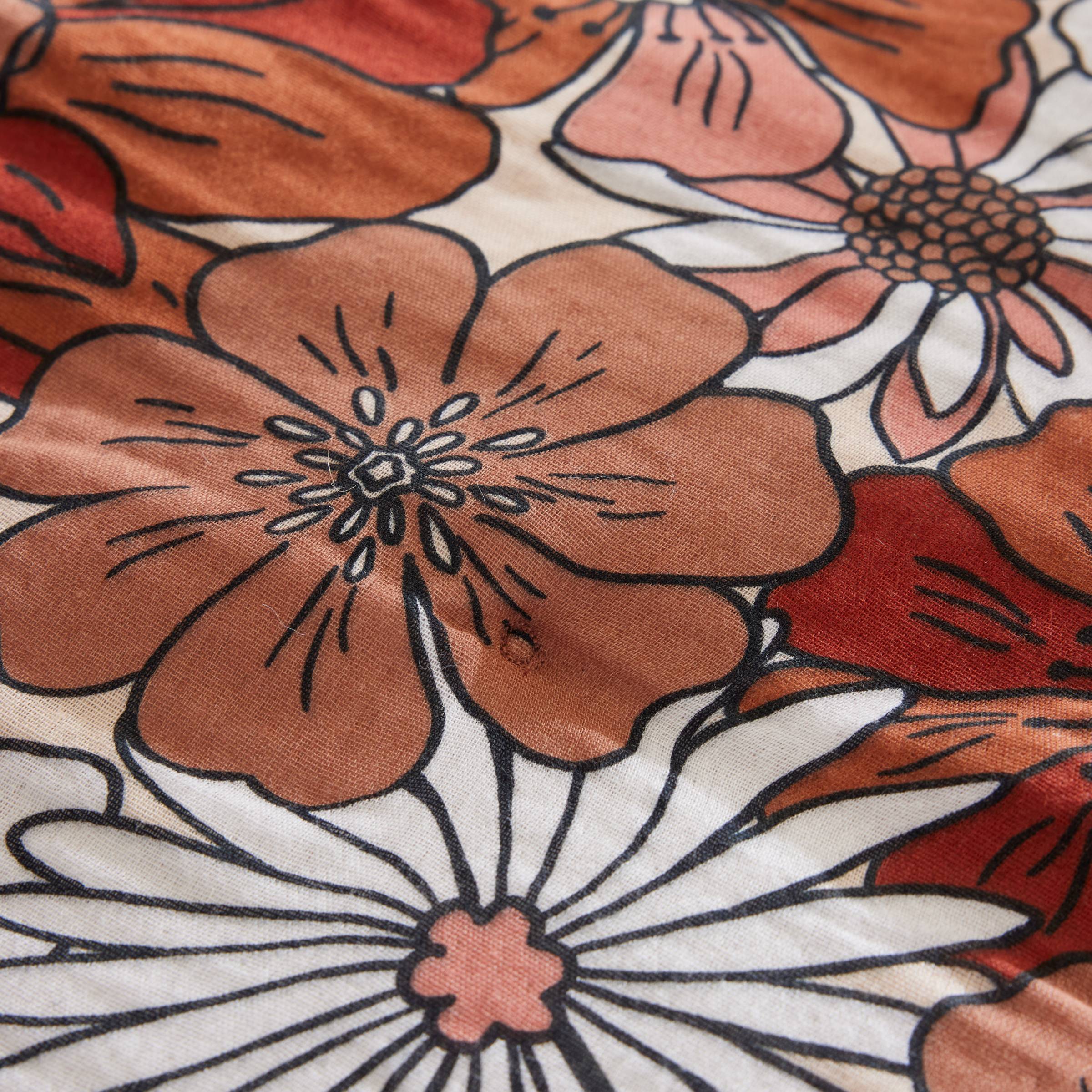 Imprimé : housse de couette à motif floral recto et unie au verso.