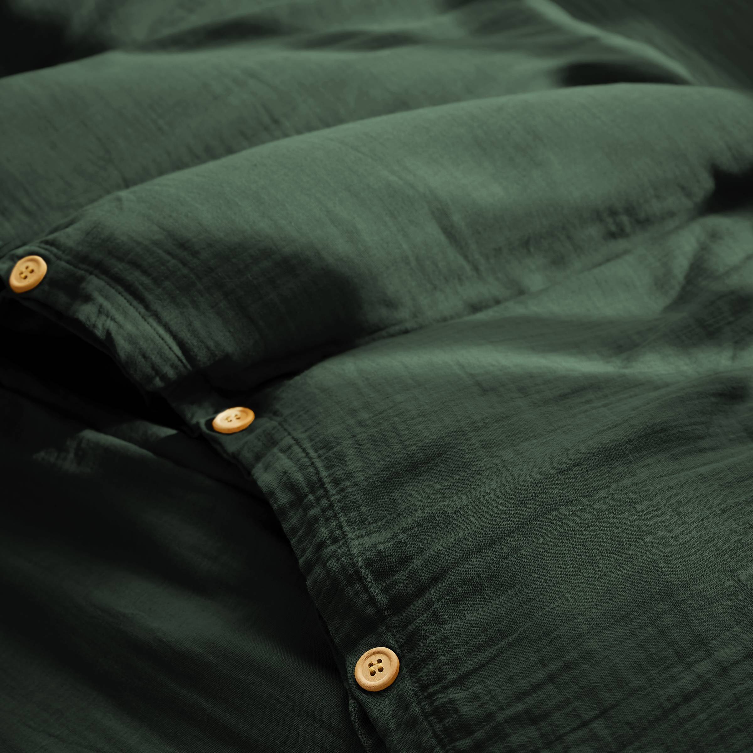Cette housse de couette Gaïa en gaze de coton apportera une touche de fraîcheur à votre chambre avec sa couleur vert sapin. Son style épuré et naturel créera une ambiance apaisante et relaxante.
