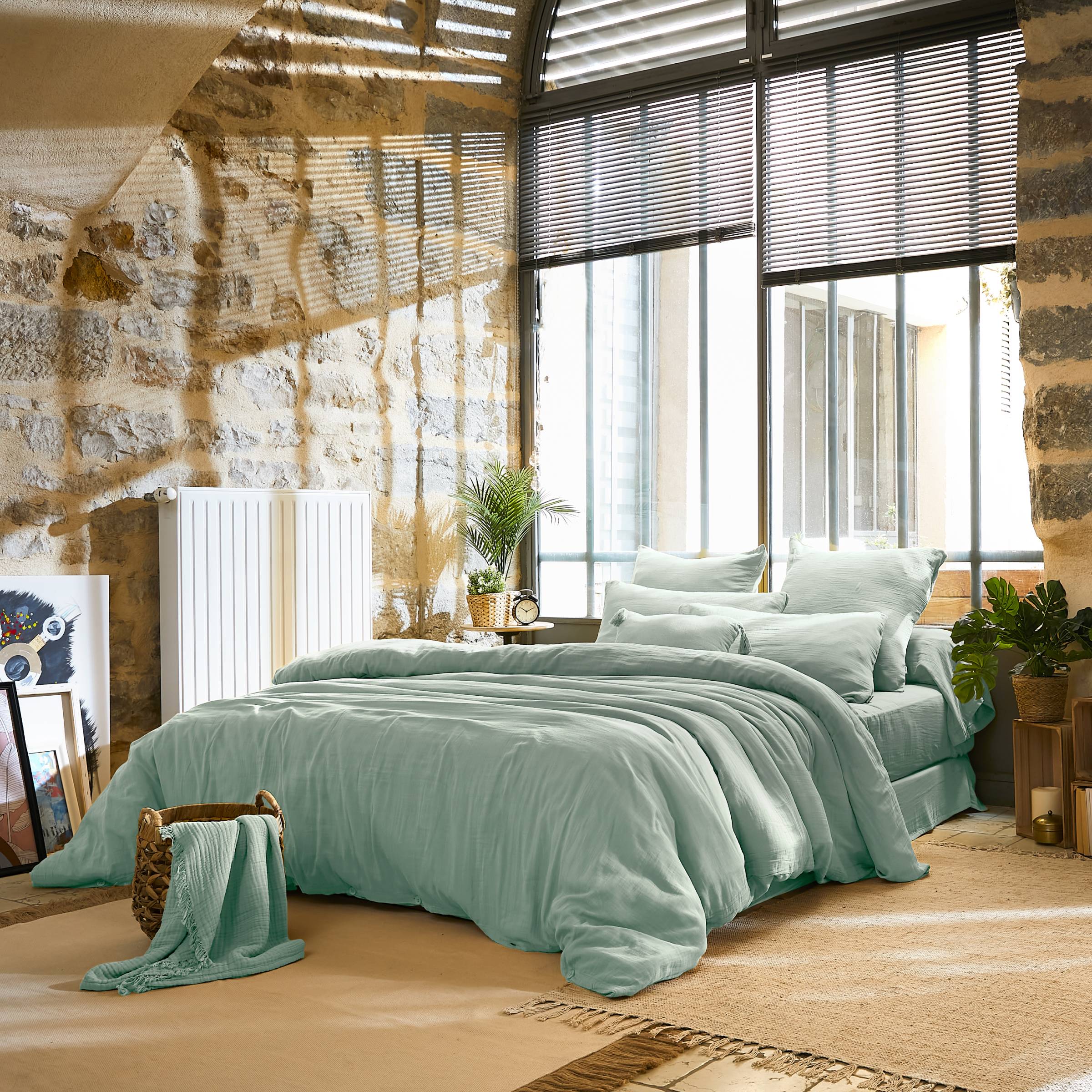 Découvrez notre collection de linge de lit Gaïa, en double gaze de coton. Ultra déco, cette housse de couette, aérienne et confortable, vous fera oublier toutes les autre matières ! Avec son style gaufré si particulier, elle est parfaitement dans la tendance actuelle des matières naturelles. Sa confection de grande qualité, et plus respectueuse de l’environnement, lui confère une résistance et une durabilité à l’épreuve du temps. Pensez à associer cette housse avec des taies d’oreiller et un drap housse de la même collection, vous pouvez également mixer les coloris entre eux pour un style totalement personnalisable.