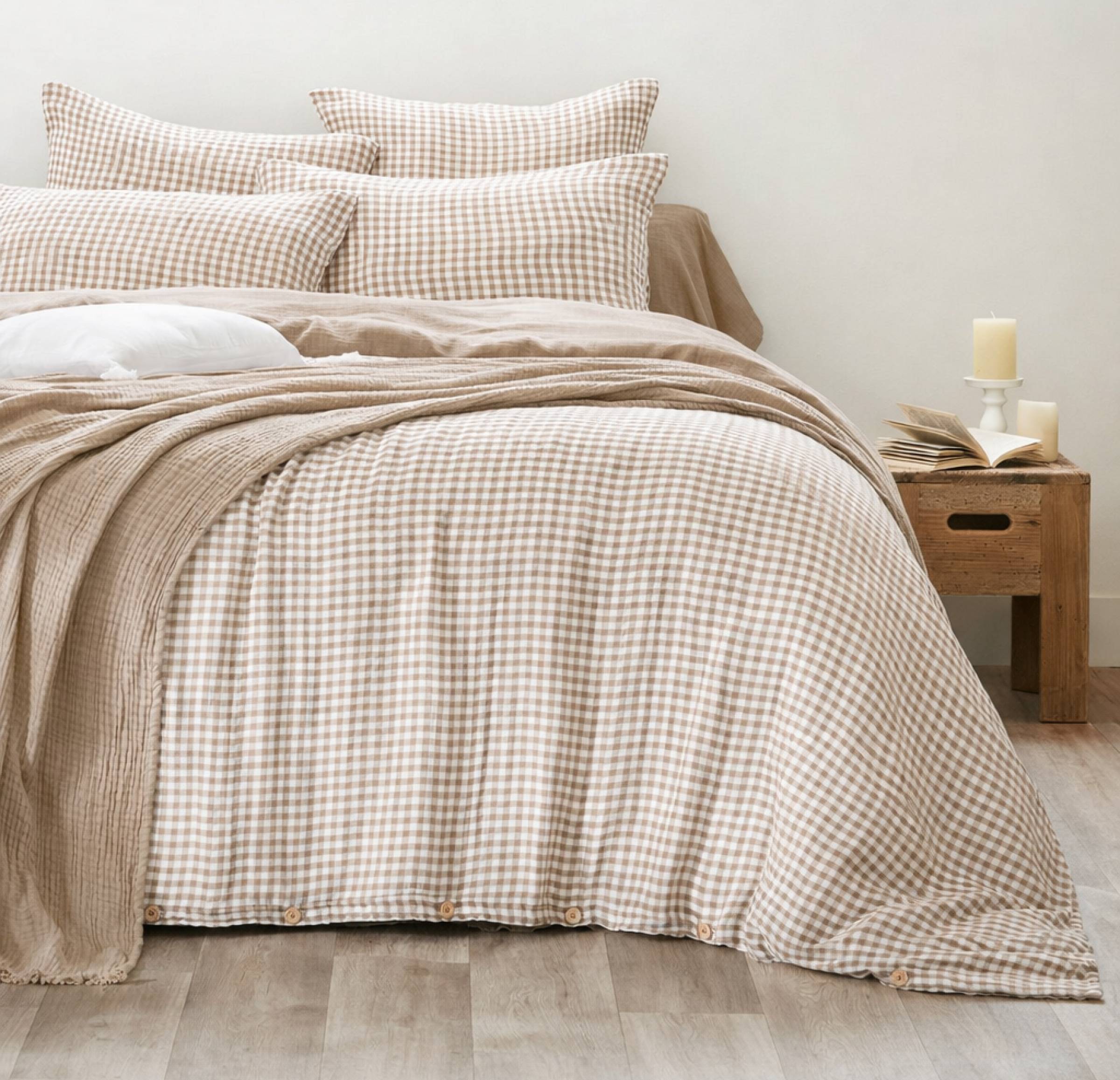 La housse de couette Gaïa vichy, en gaze de coton, apportera du cachet et du caractère à votre chambre.