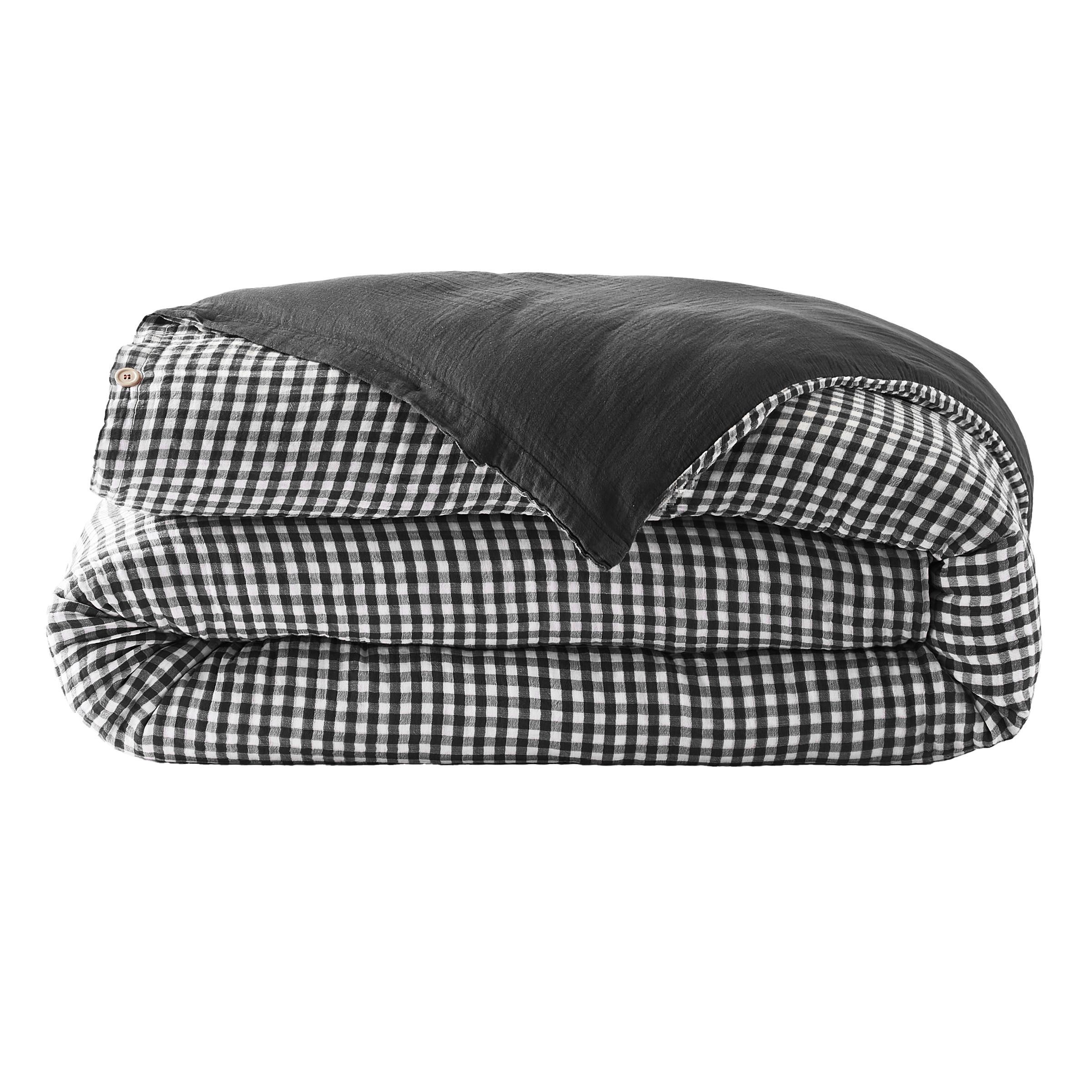 Cette housse de couette Gaïa vichy en gaze de coton vous enveloppera de douceur pour des nuits paisibles. Son motif vichy noir apportera une touche graphique à votre chambre pour une ambiance cosy et moderne.