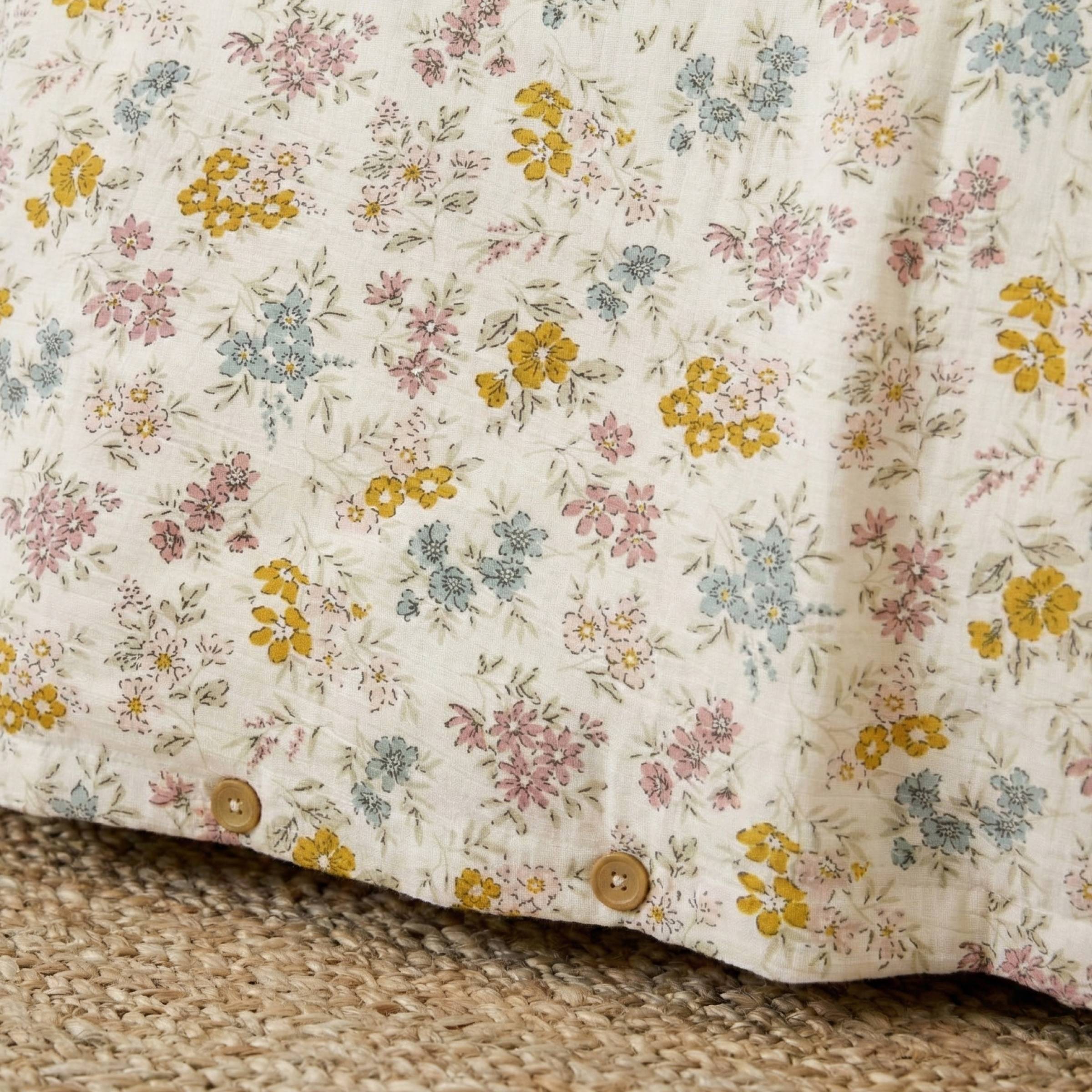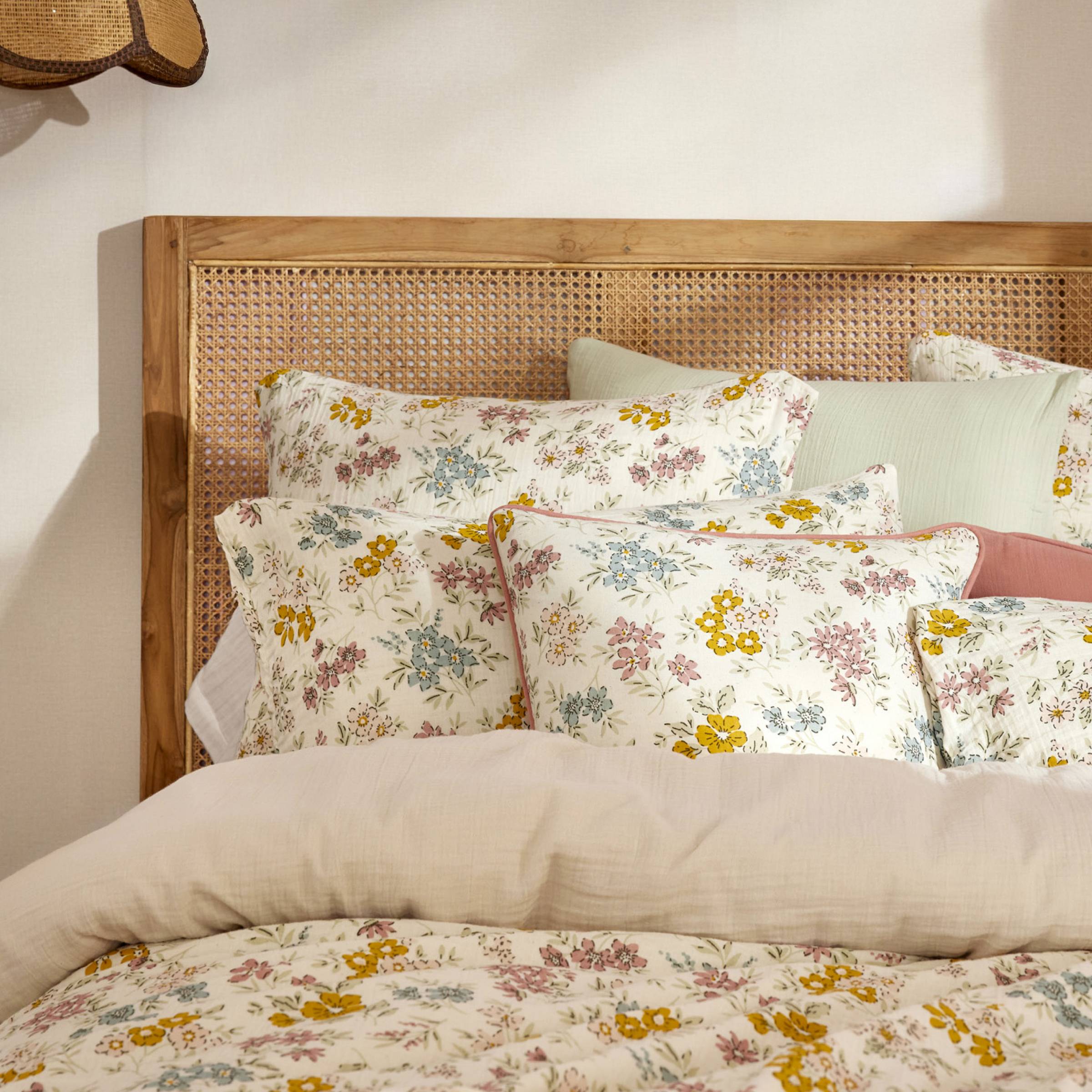 Imprimé : housse de couette à motif floral recto et unie verso.
