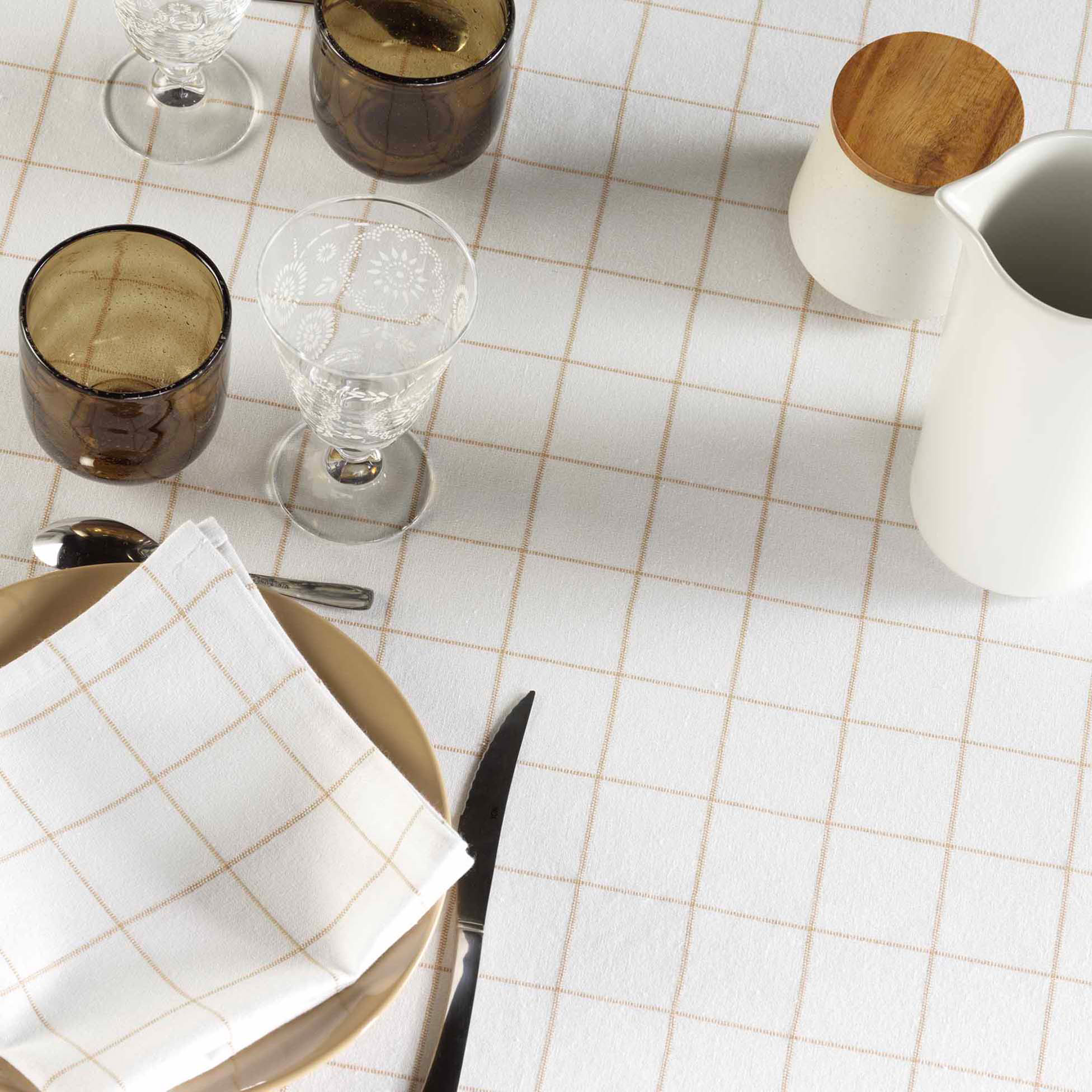 Cette nappe rectangulaire Axel, avec son motif à carreaux, apporte une touche graphique à votre table. Son mélange de coton et de polyester lui confère une douceur agréable et une grande résistance.