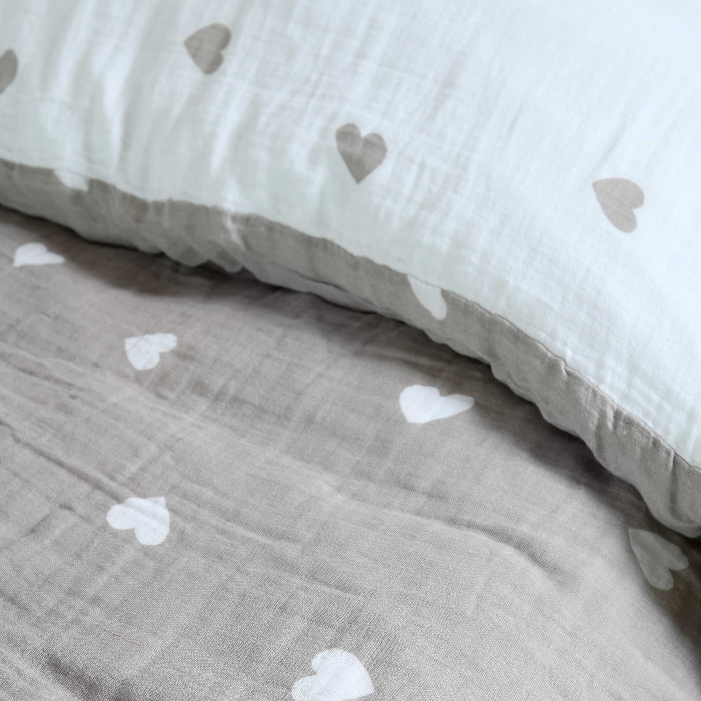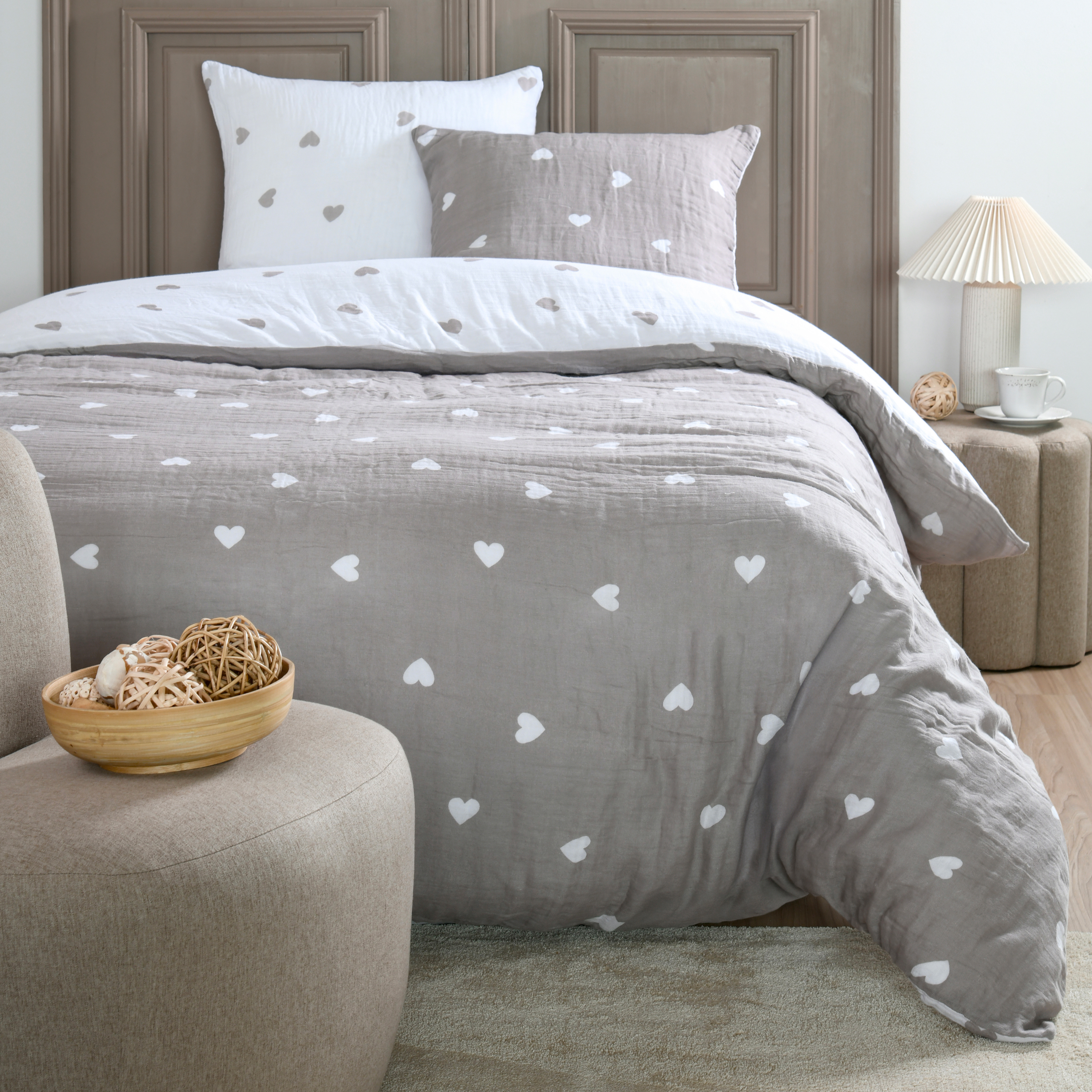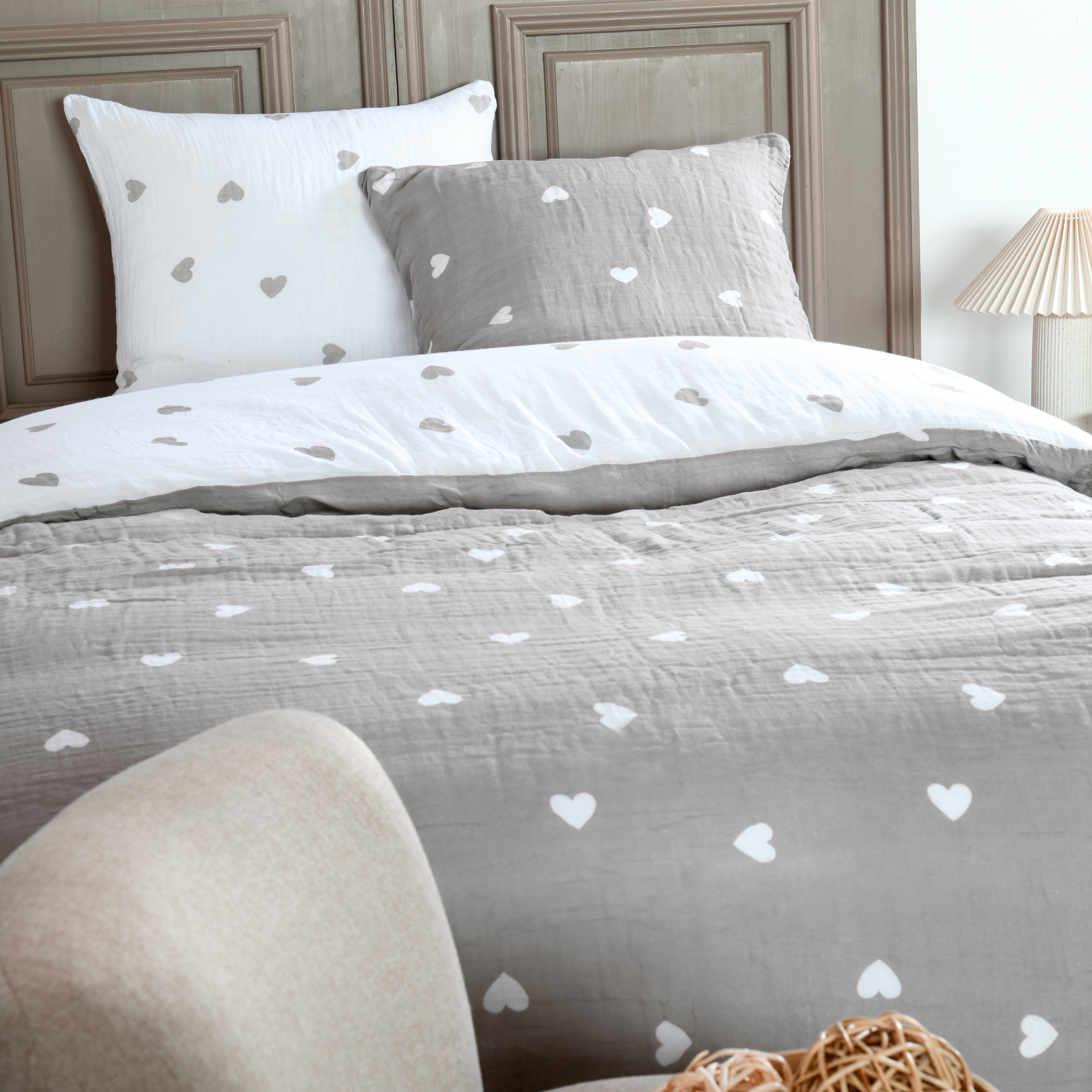 Découvrez le confort enveloppant et le charme discret de notre parure Charmy en gaze de coton. Sa douceur vous invite à des nuits paisibles, tandis que sa teinte taupe apporte une élégance naturelle à votre chambre.