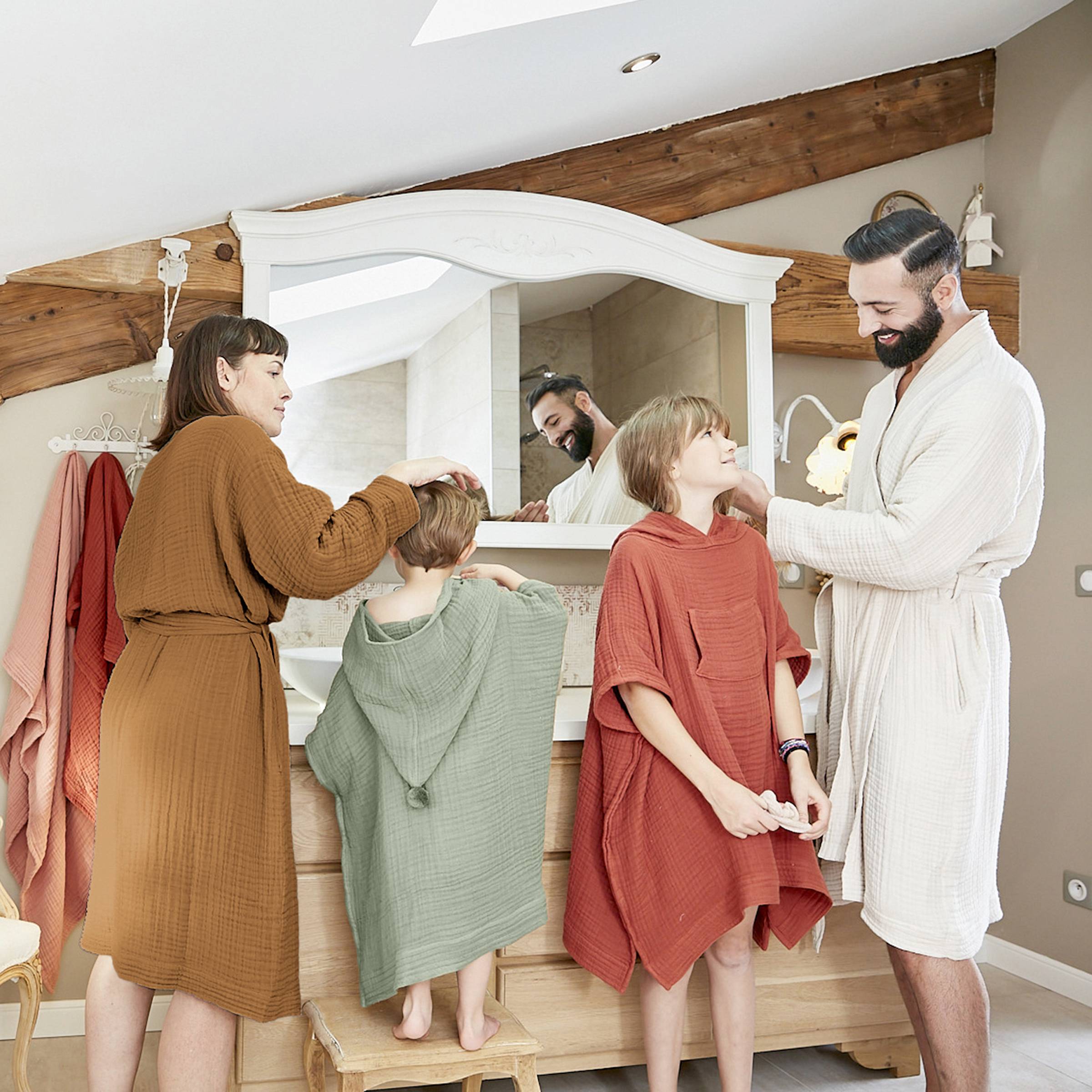 Naturellement gaufré, ce peignoir en gaze de coton ne nécessite pas de repassage.