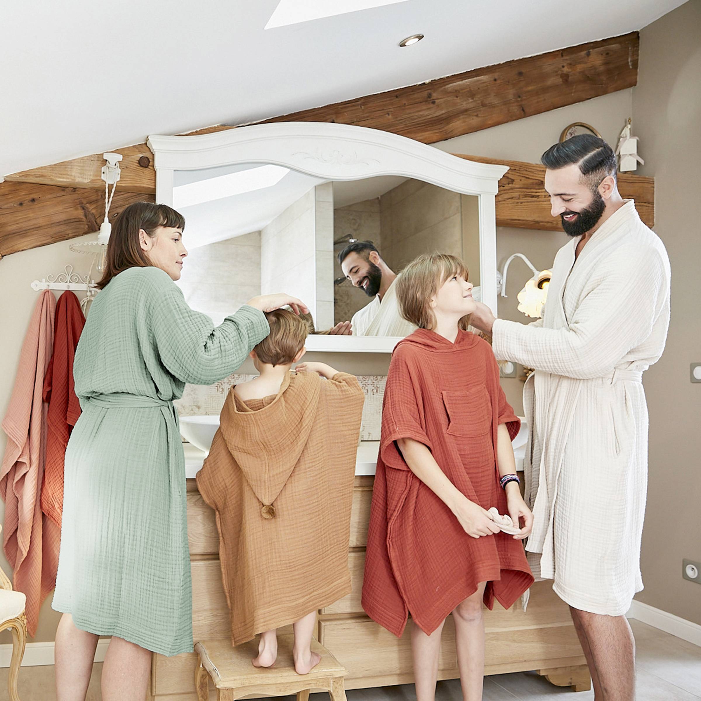 Naturellement gaufré, ce peignoir en gaze de coton ne nécessite pas de repassage.