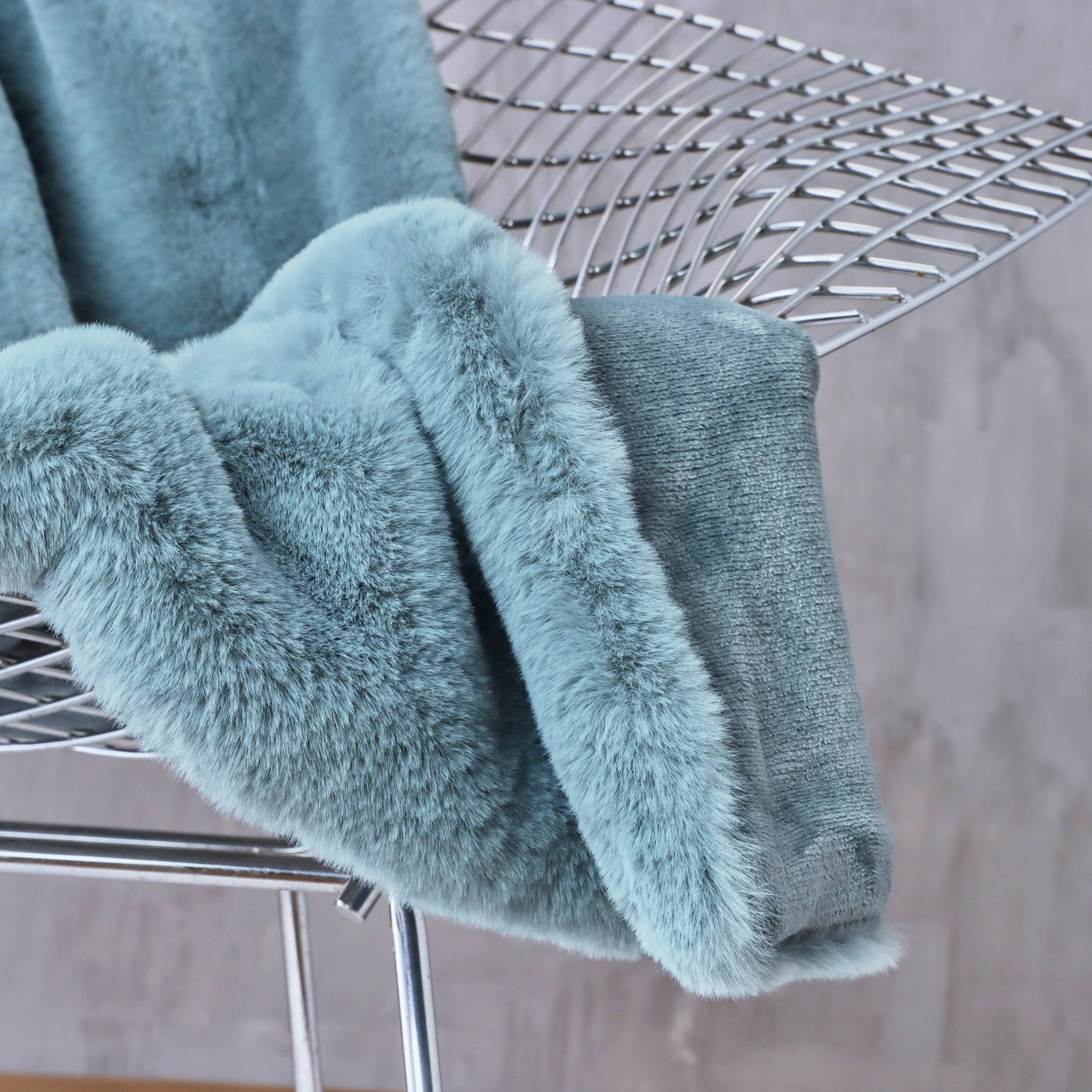Ce plaid Finn en fausse fourrure bleue vous enveloppera de douceur lors de vos moments de détente. Son style chalet de montagne apportera une ambiance chaleureuse à votre intérieur.