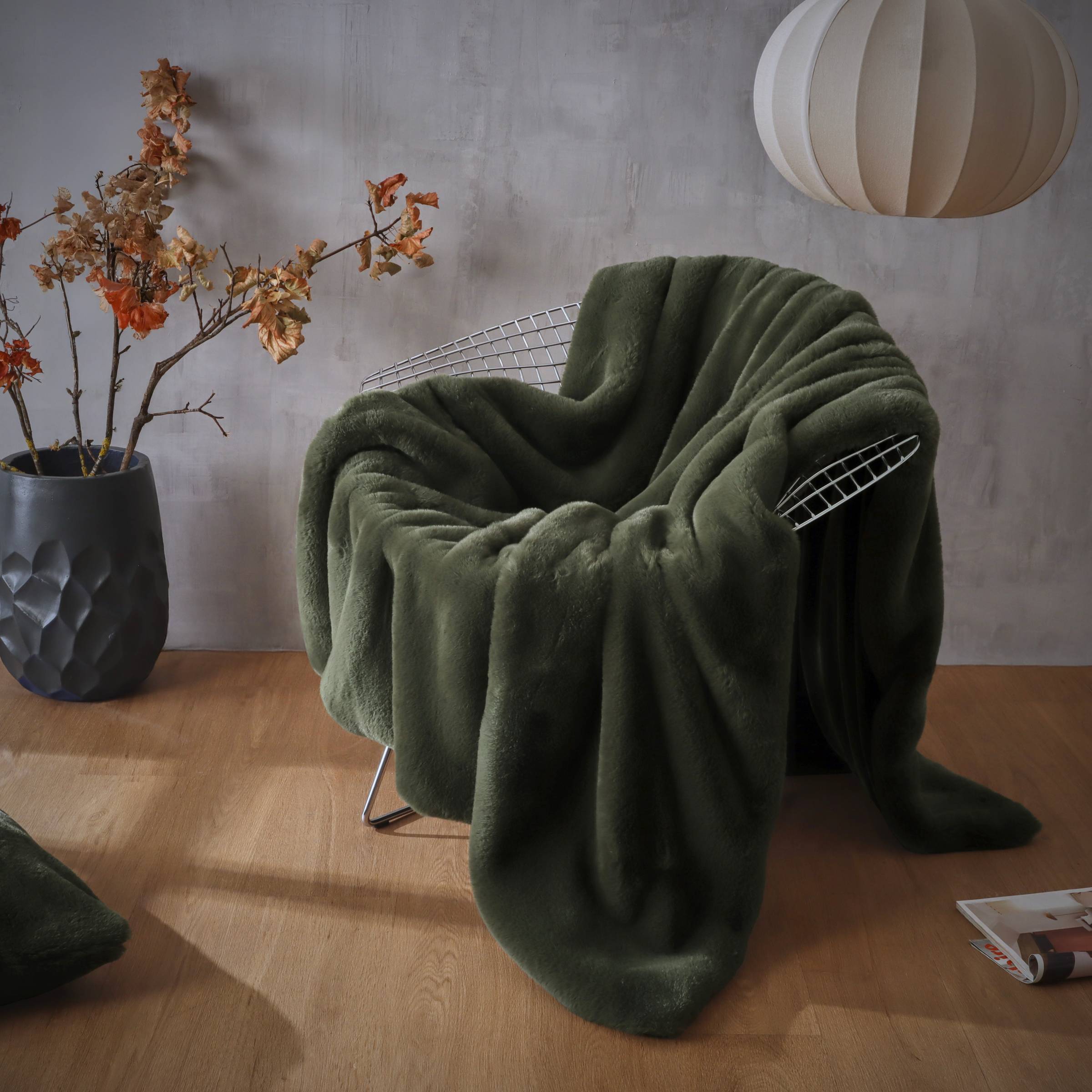 Ce plaid Finn en fausse fourrure kaki est idéal pour créer une ambiance chaleureuse et confortable dans votre salon. Son toucher doux et sa couleur apaisante en font un accessoire de décoration parfait pour vos soirées cocooning.