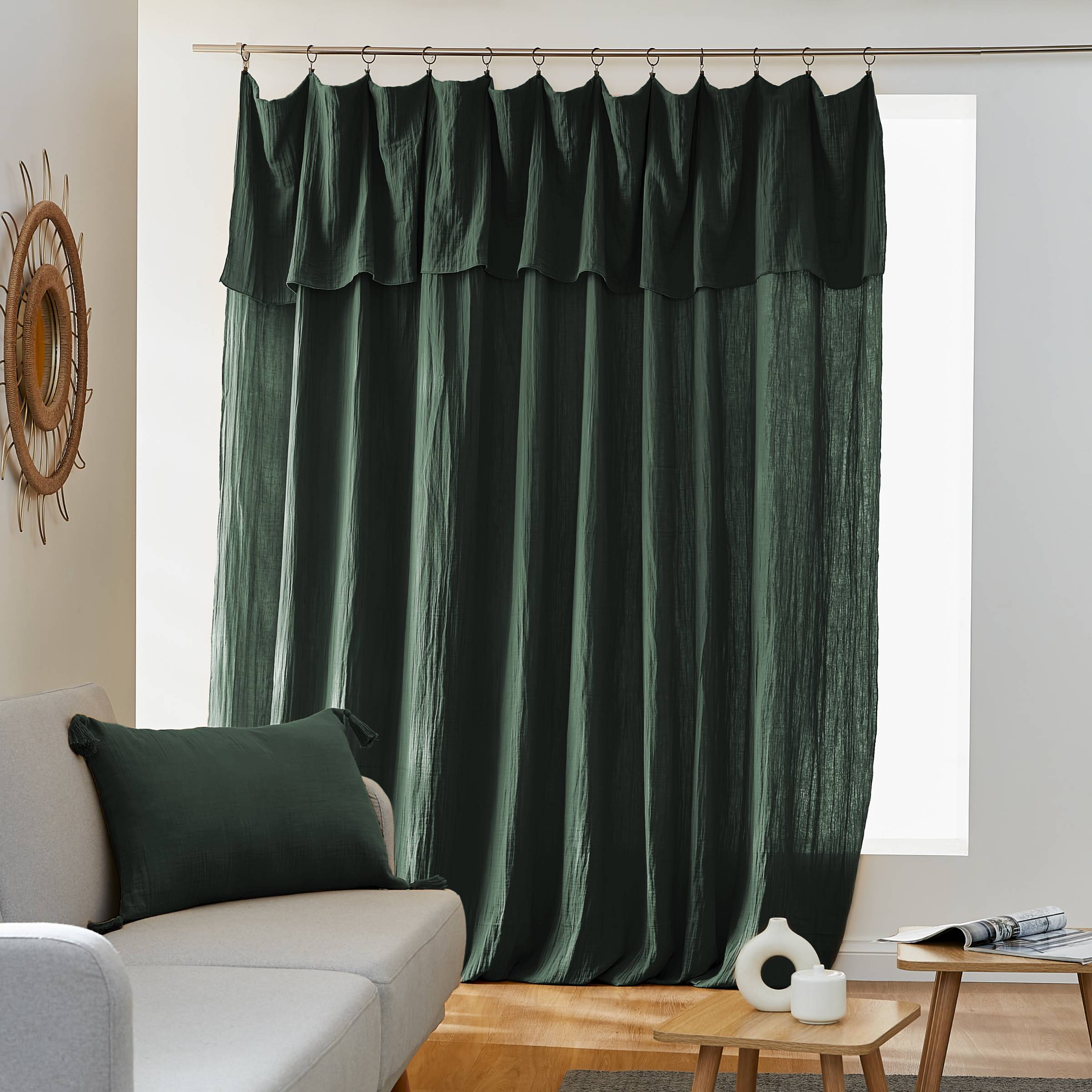 Ce rideau en gaze de coton de la gamme Gaïa apportera une touche de fraîcheur à votre intérieur grâce à sa couleur vert sapin. Ajustable en hauteur, il s'adaptera parfaitement à vos fenêtres pour créer une ambiance cosy et naturelle.
