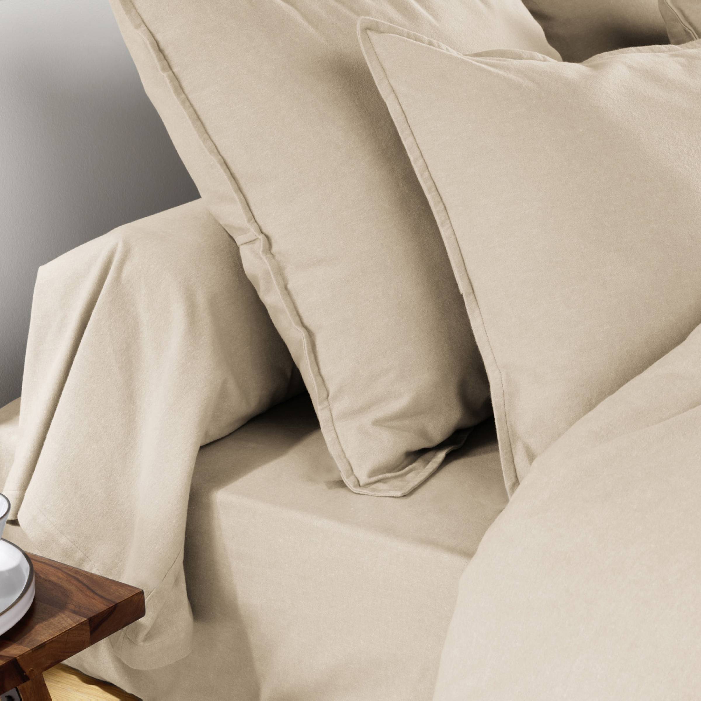 Douce et chaleureuse, la taie d'oreiller Nina en flanelle beige vous enveloppe de confort. Idéale pour les nuits d'automne et d'hiver, elle vous offre une sensation de bien-être inégalée au contact de votre peau.