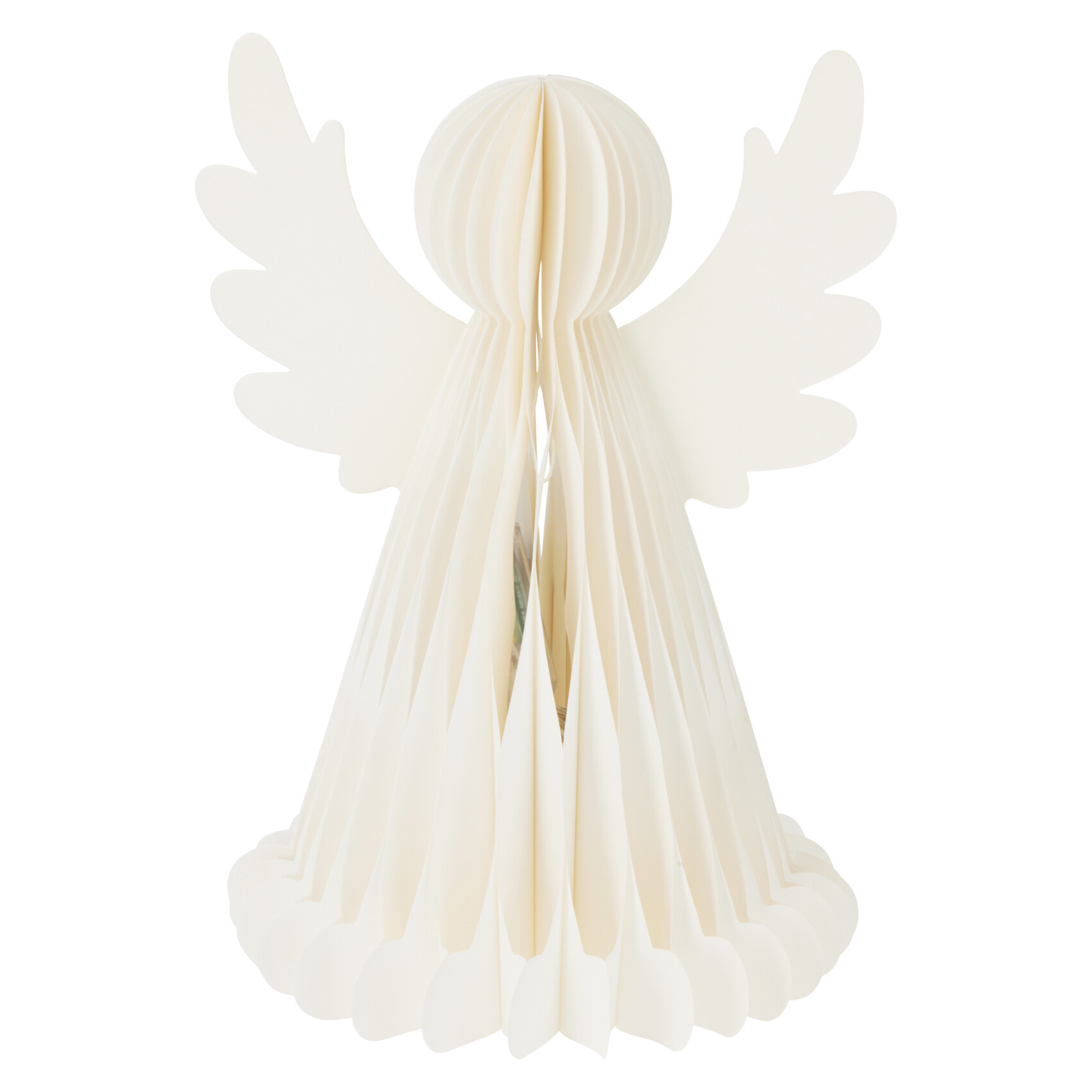 Ange lumineux à piles 6 LED (H38 cm) Papier fermeture magnétique Blanc