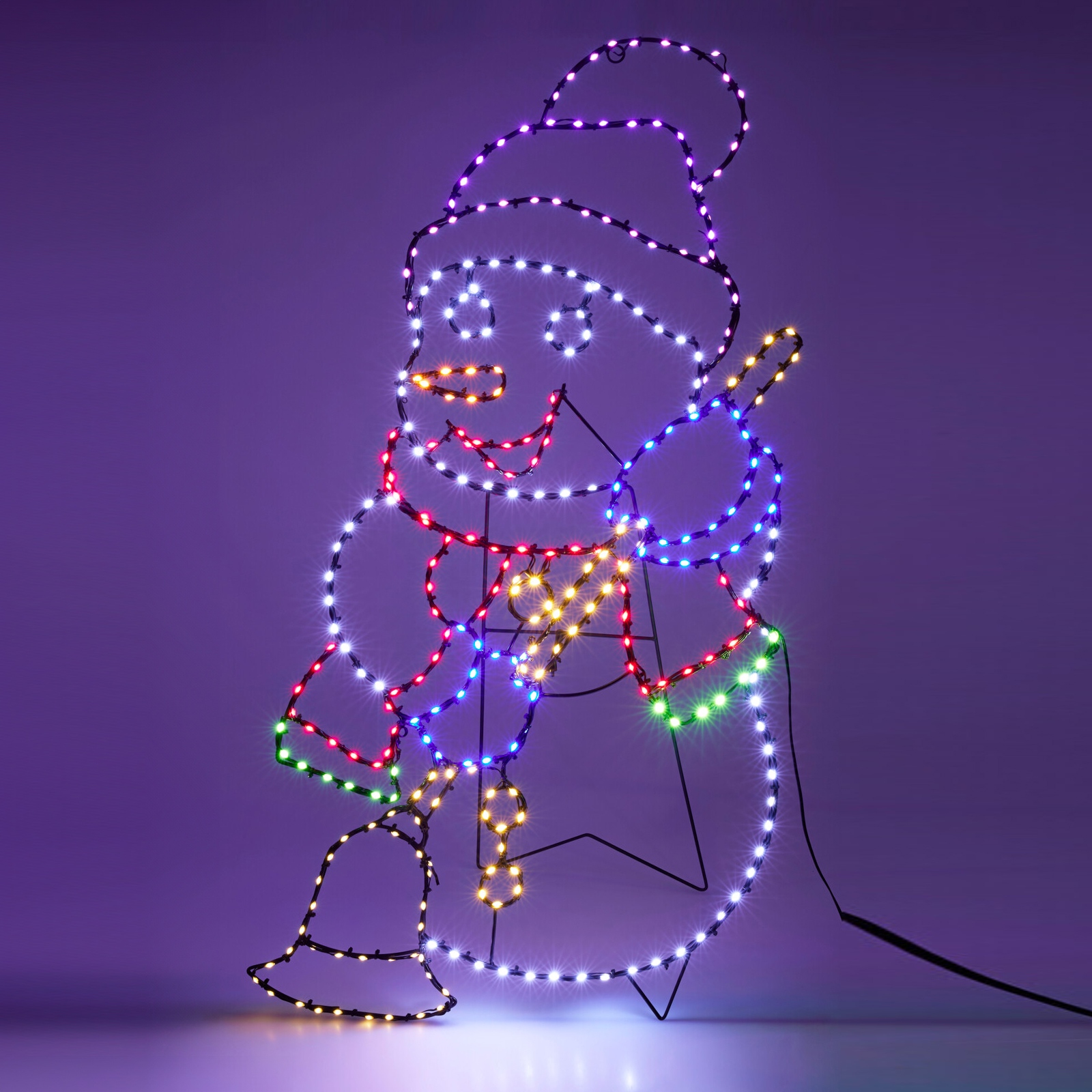 Égayez votre maison avec ce Bonhomme de neige lumineux aux couleurs vives. Grâce à son effet flash néon, il apportera une touche festive et joyeuse à votre décoration de Noël.