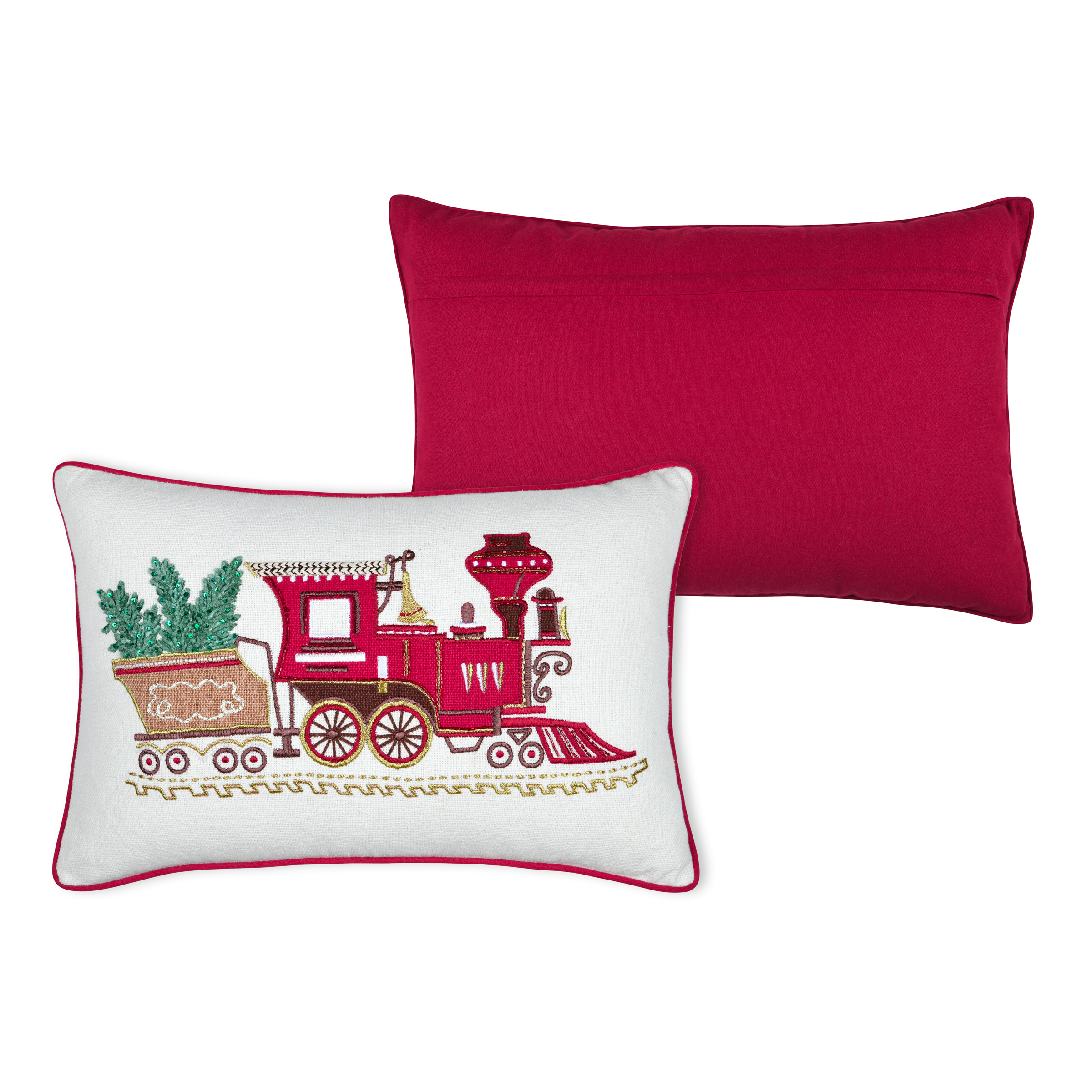Invitez la magie de Noël dans votre décoration avec ce coussin brodé au look vintage. Avec son motif de train de Noël au recto et son design uni au verso, il apportera une touche festive et chaleureuse à votre intérieur.