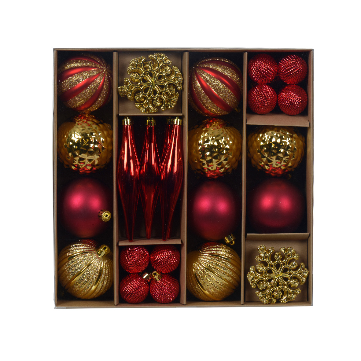 Donnez une touche d'élégance à votre sapin de Noël avec ce lot de boules de Noël bordeaux et or. Avec leur finition mate, brillante et pailletée, ces boules apporteront une ambiance festive et chaleureuse à votre intérieur. Elles sont parfaites pour créer une décoration de Noël traditionnelle et raffinée.