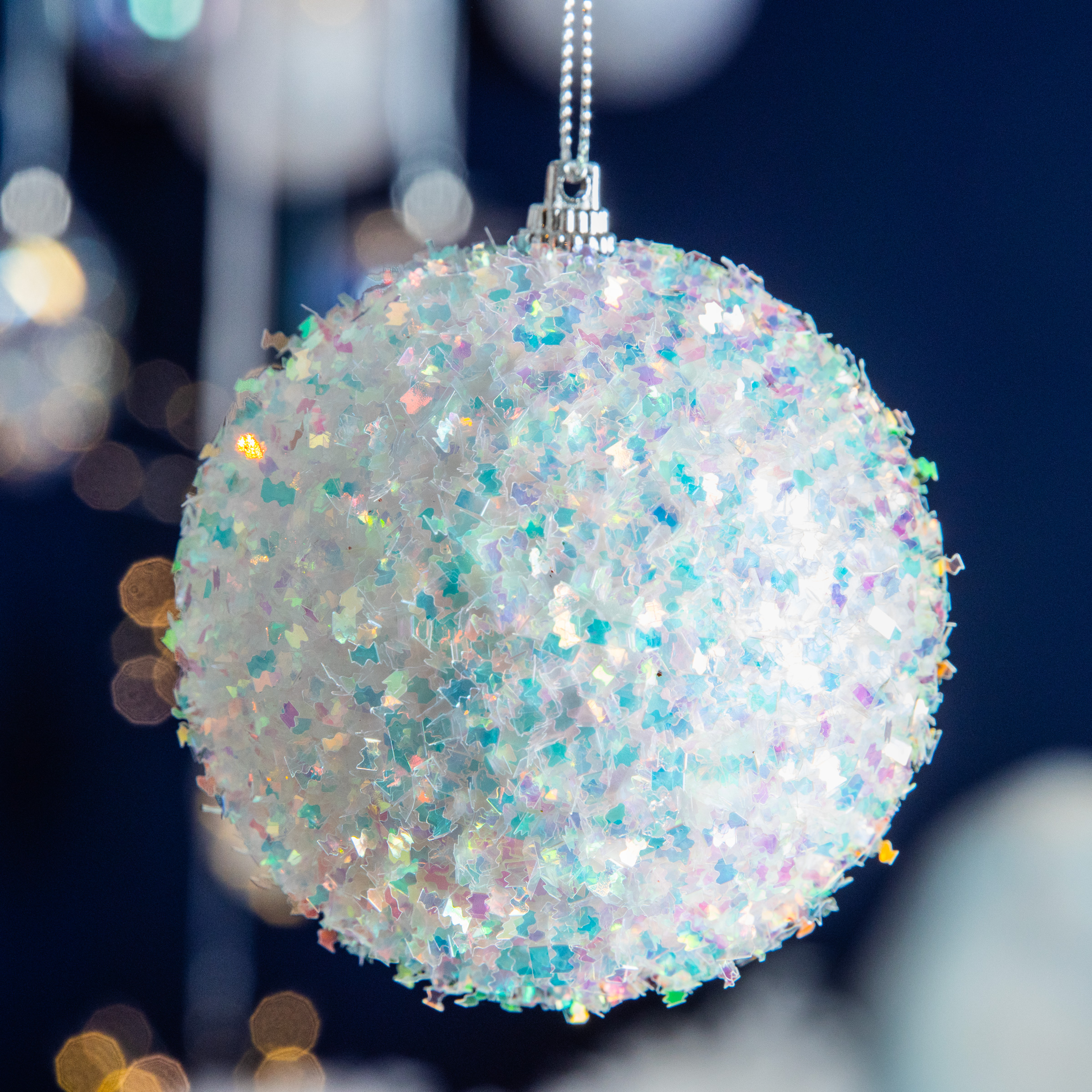 Lot de 12 boules de Noël (D80 mm) Sequins Blanc irisé
