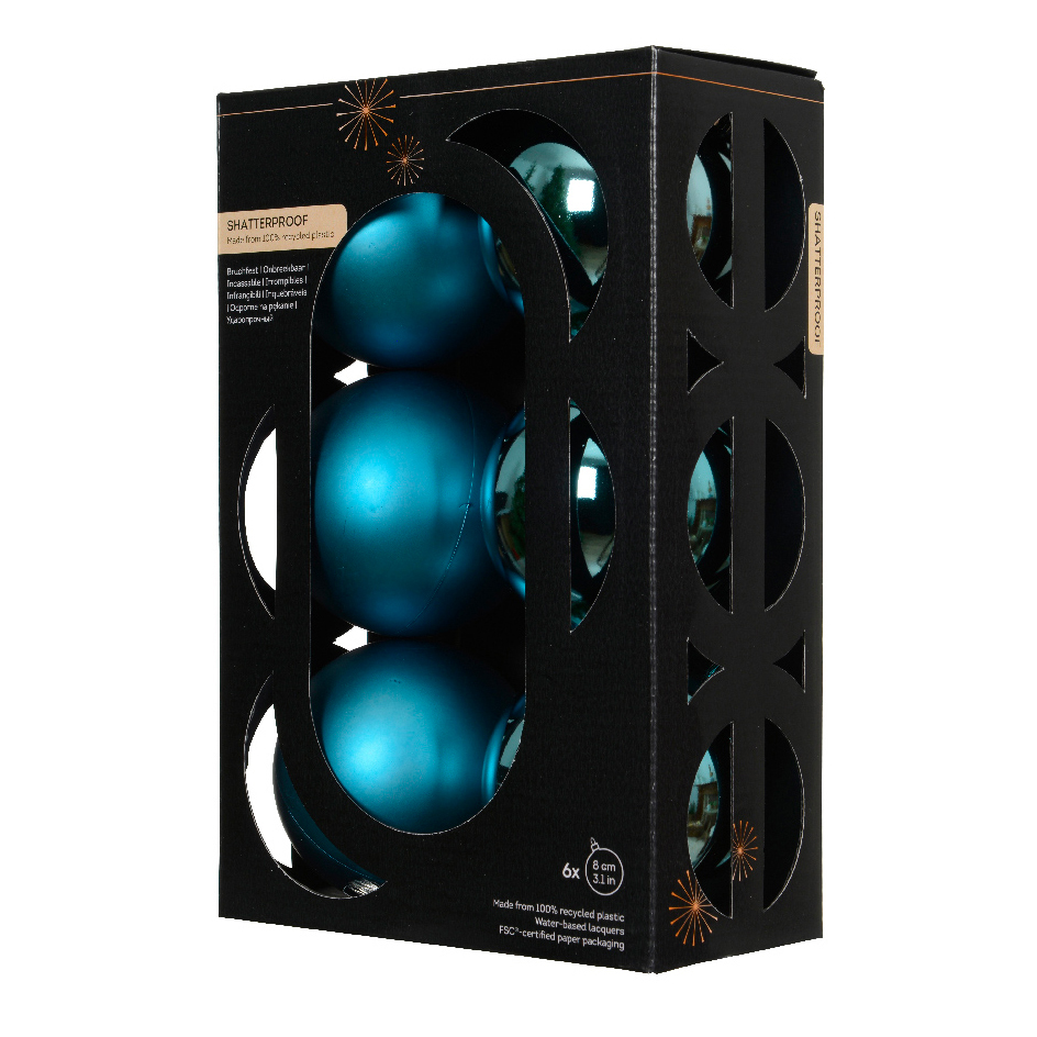 Lot de 6 boules de Noël (D80 mm) Aravis Bleu pétillant