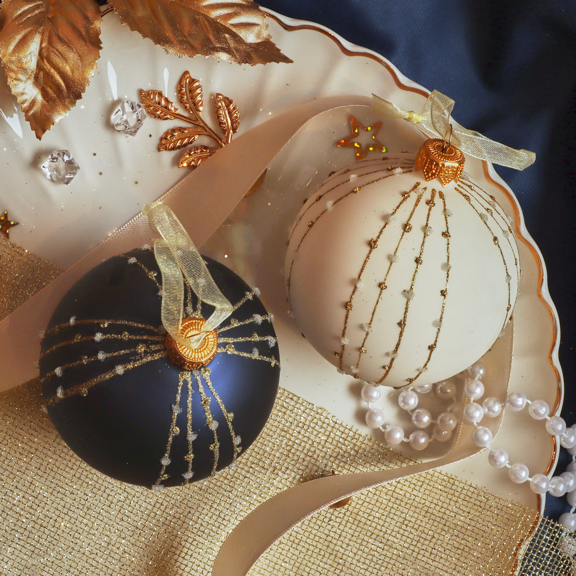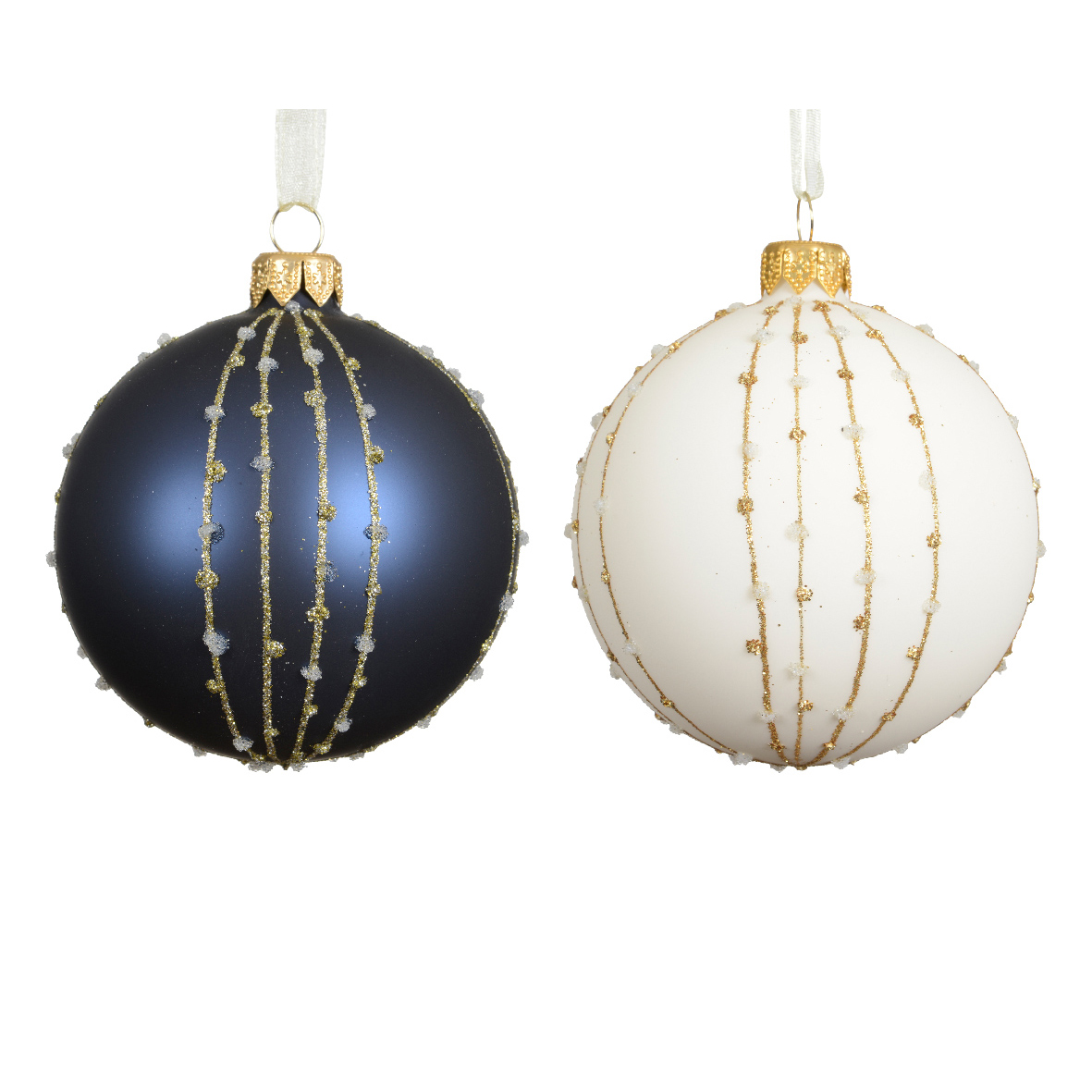 Lot de 6 boules de Noël en verre (D80 mm) Christmas night Blanc laine et bleu nuit