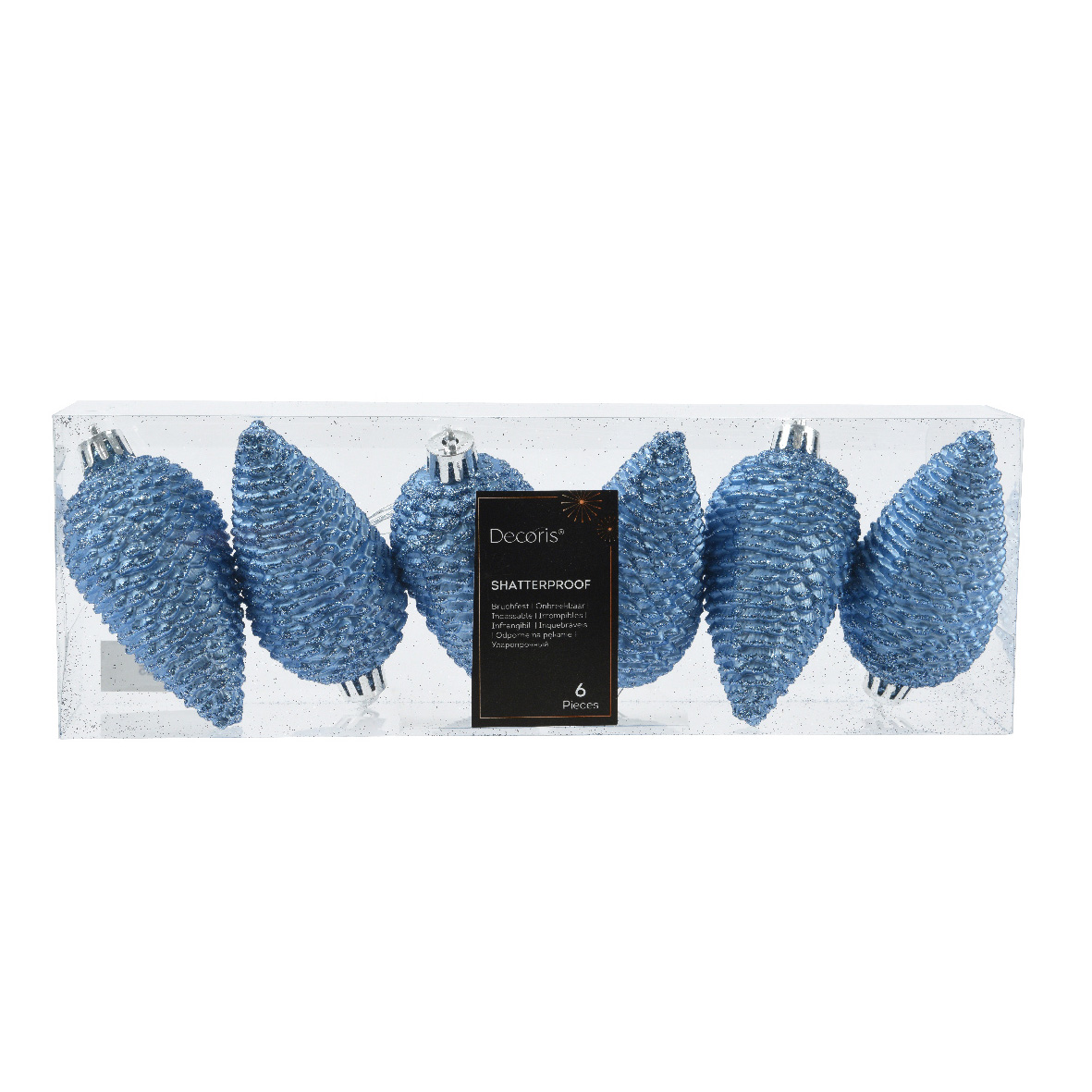 Apportez une touche de nature à votre décoration de Noël avec ce lot de 6 pommes de pin à suspendre. De couleur bleu ciel pailleté, elles évoquent la fraîcheur des matins d'hiver et apportent une note féerique à votre sapin. Faciles à accrocher, elles s'intégreront parfaitement à votre décoration festive.
