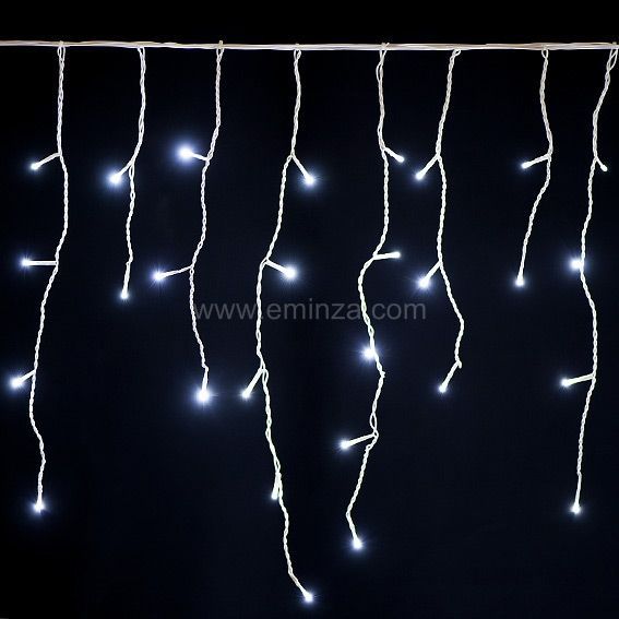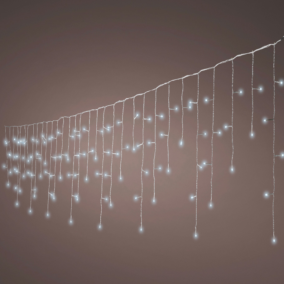 Mode de fonctionnement : stalactite lumineuse clignotante avec 8 jeux de lumière (dont une FIXE) et une fonction mémoire. Ce produit est muni d'un minuteur lui permettant de s'allumer 8 heures par jour automatiquement. À brancher sur une prise (transfo IP44 fourni). Utilisation intérieure et extérieure.