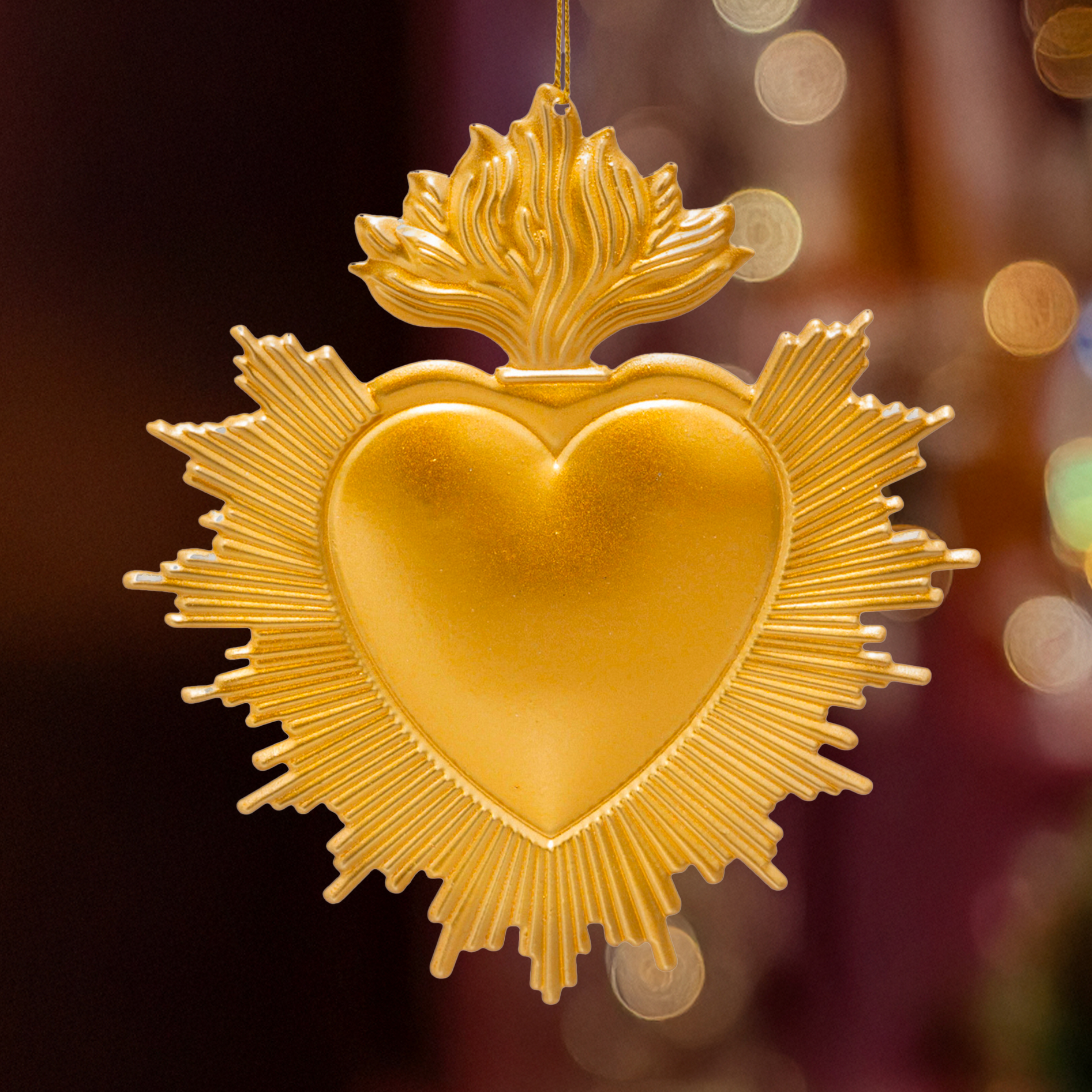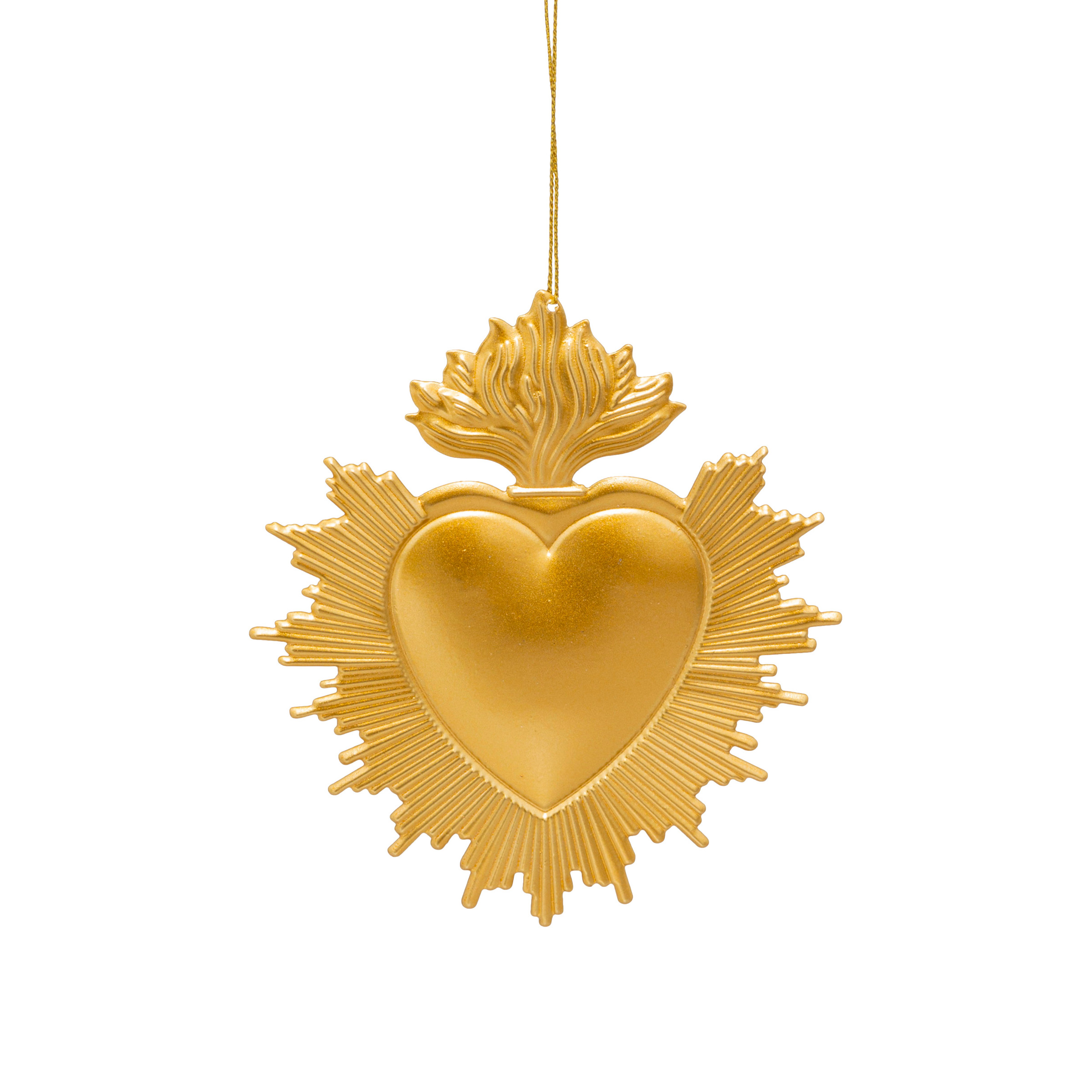 Cette Suspension de Noël en forme de cœur Exvoto apportera une touche d'élégance et de chaleur à votre décoration festive. Sa couleur dorée et sa matière en métal lui confèrent un aspect raffiné et précieux.